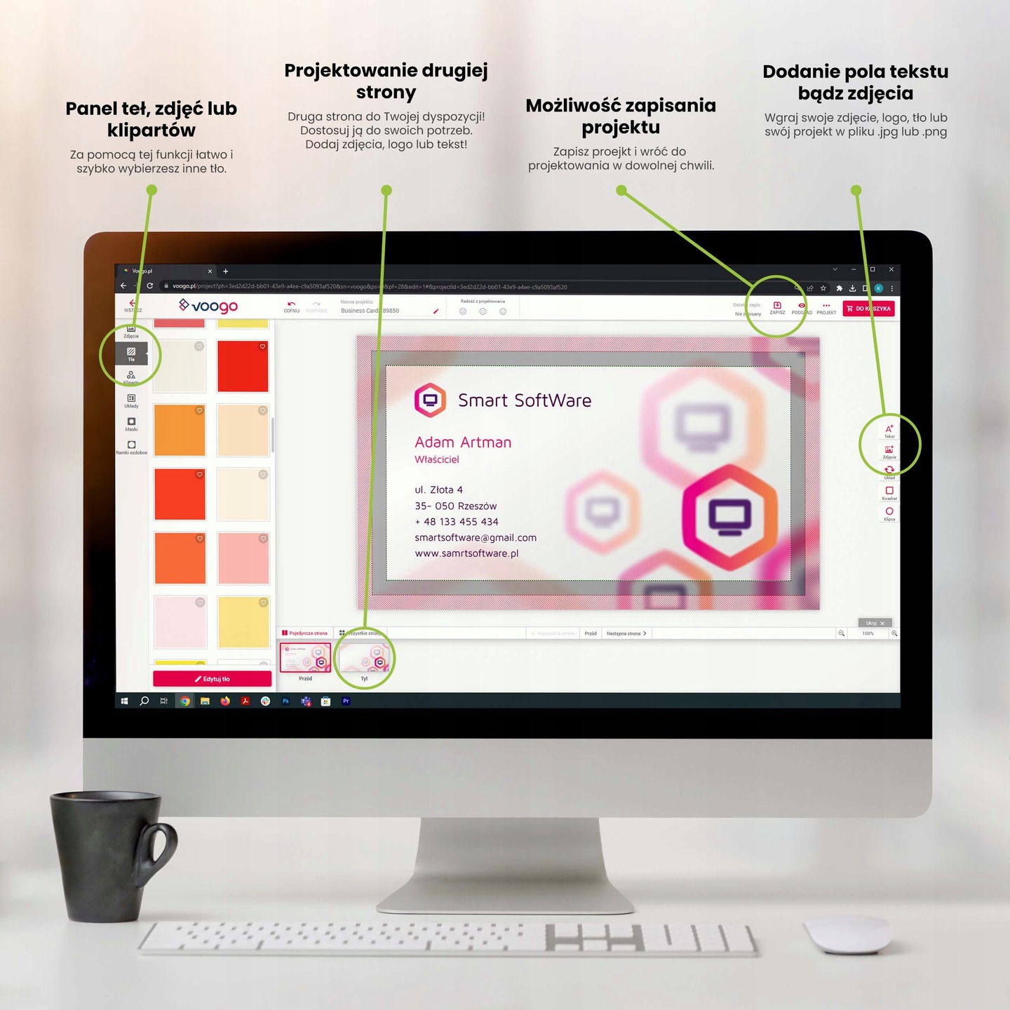 Вам не нужно использовать услуги профессионального графического дизайнера - заказывать визитные карточки в Воого и подготовить проект в онлайн -создателе. Его операция проста, и вы будете выполнять все действия почти интуитивно. Узнайте самые важные варианты мастера: