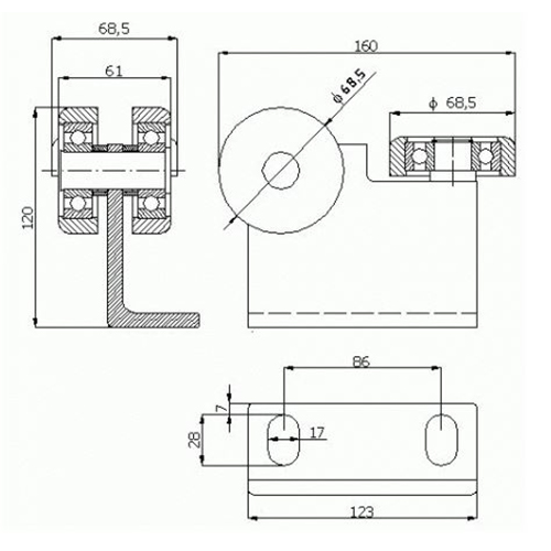 - описание: 3-х роликовая тележка с угловым кронштейном
