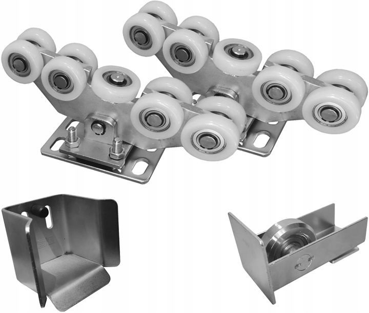 Комплект 9-роликовых пластиковых тележек с фурнитурой для откатных самонесущих ворот с рейкой 80х80х5 мм