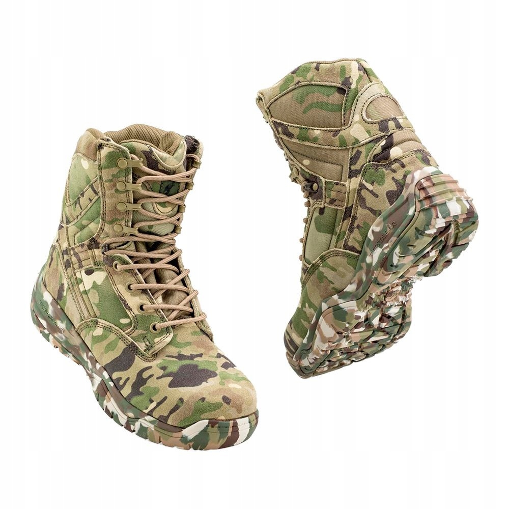Тактическая обувь подходит к мультикамовой - это военная обувь, сделанная из эффективной комбинации кожи и нейлоновой сетки в мультичке. EVA и не -сластичная резиновая подошва, чтобы обеспечить полный комфорт и безопасность. Специально предназначен для военного персонала и игроков Airsoft, которые должны замаскировать весь свой гардероб. Они очень удобны и безопасны, в частности, благодаря проколам, устойчивой к кевларской вставке и образованной межподошной сетке от пены EVA. размер: 39 евро (6 Великобритания, 7 США)