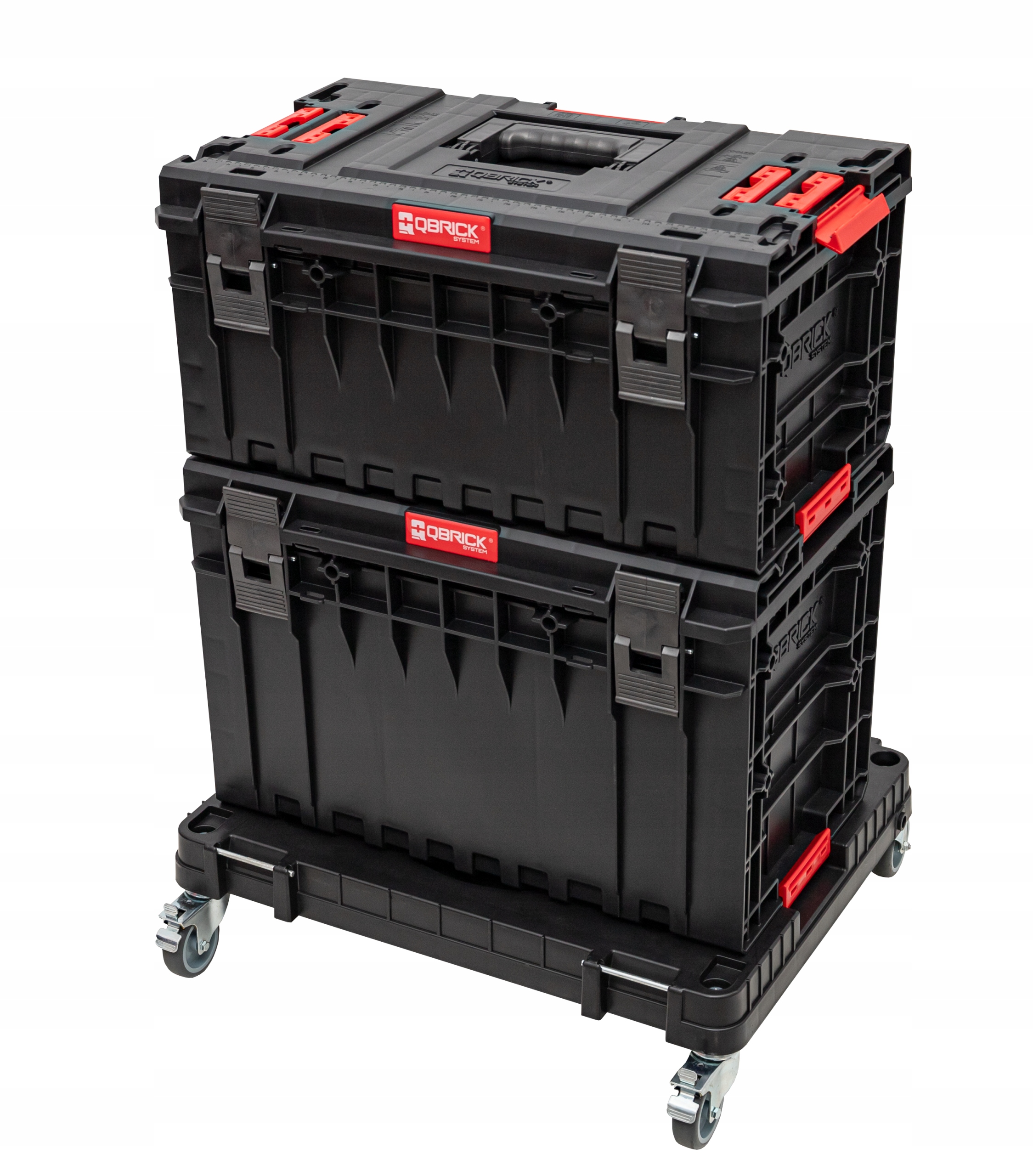 - 4 поворотных колеса с тормозами, обеспечивающие комфортное передвижение с платформой и ящиками.
