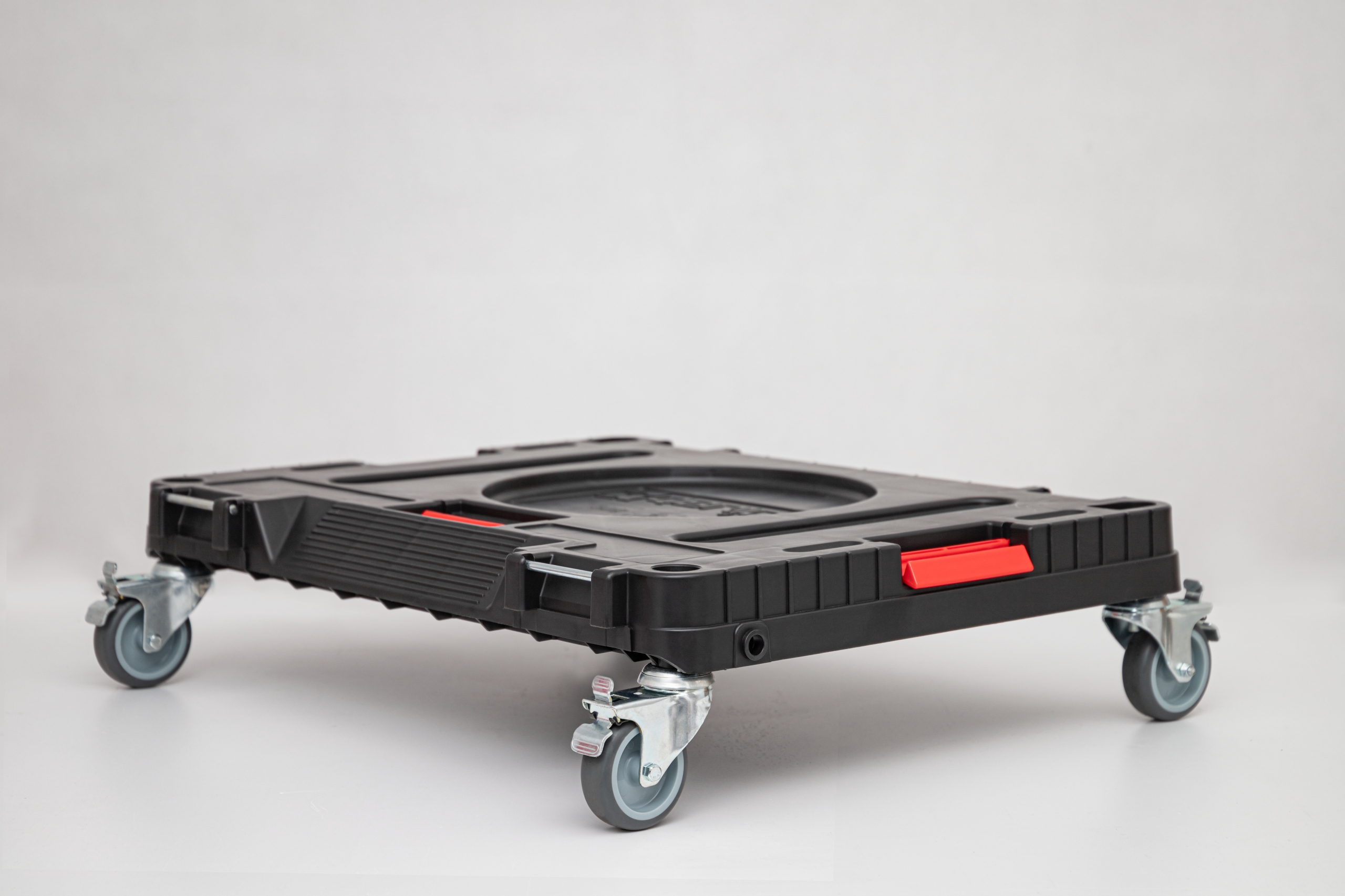 Транспортная платформа оснащена поворотными колесами с тормоза и прочная конструкция, позволяющая выдерживать максимальную нагрузку 120 кг. Транспортная платформа в сочетании с другими модулями линейки ONE позволяет создавать мобильные транспортные комплекты для использования в мастерской, гараже, а также дома.