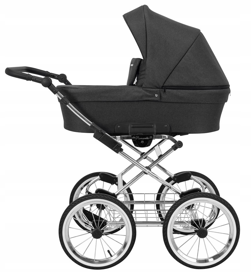 Коляска Romantic – вневременная классика в сочетании с высококачественными материалами. Для отделки коляски использованы самые качественные материалы, безопасные для ребенка. Коляска имеет безопасные классические поперечные рычаги, амортизирующие неровности. Идеально подходит для неровной местности. Ретро-коляска может стать отличным выбором для людей, которые ценят стильные решения и классический дизайн.