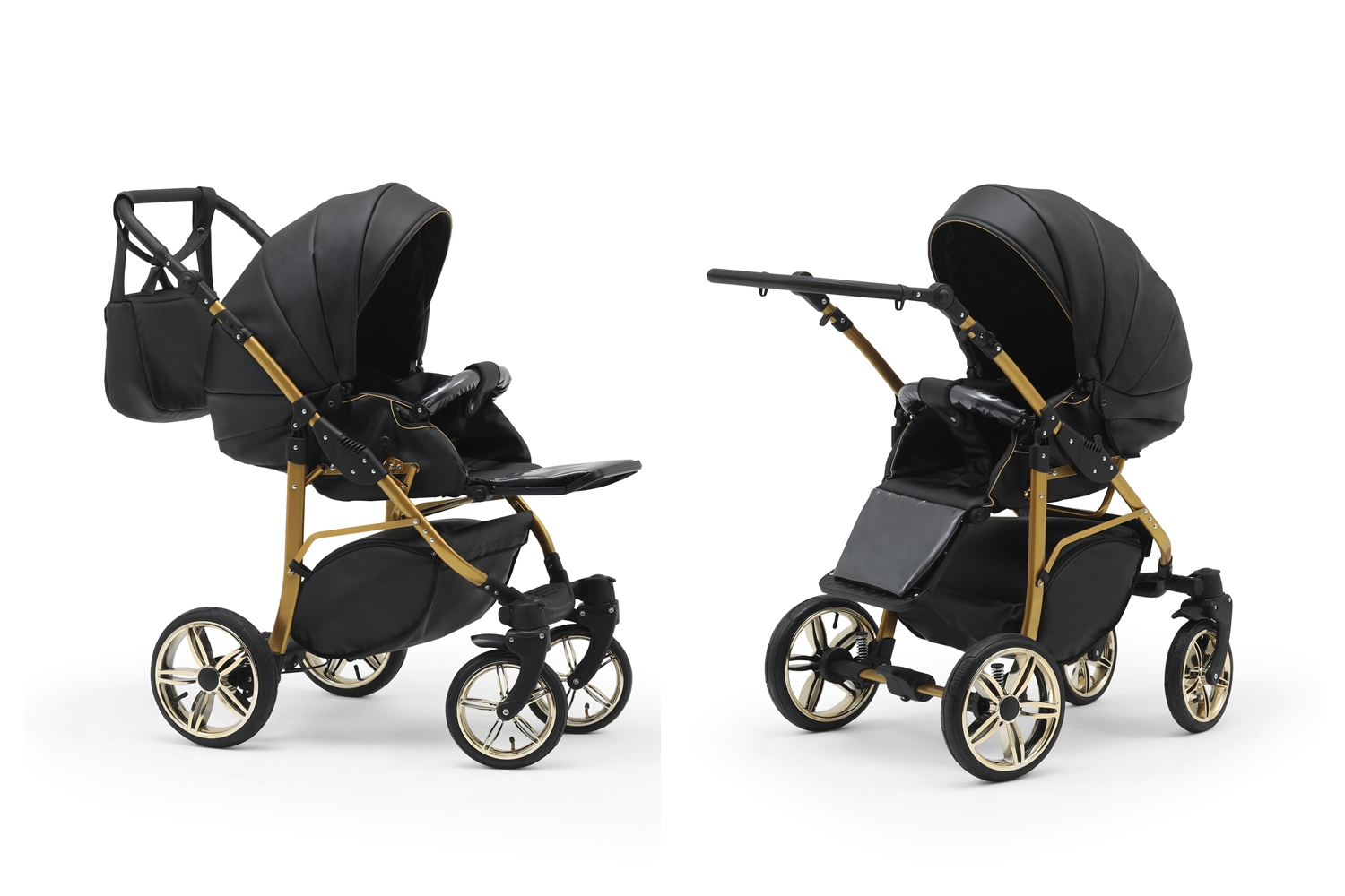 <ул>В стандартной комплектации коляска имеет колеса как на главном фото.Золотые накачанные ирисы.