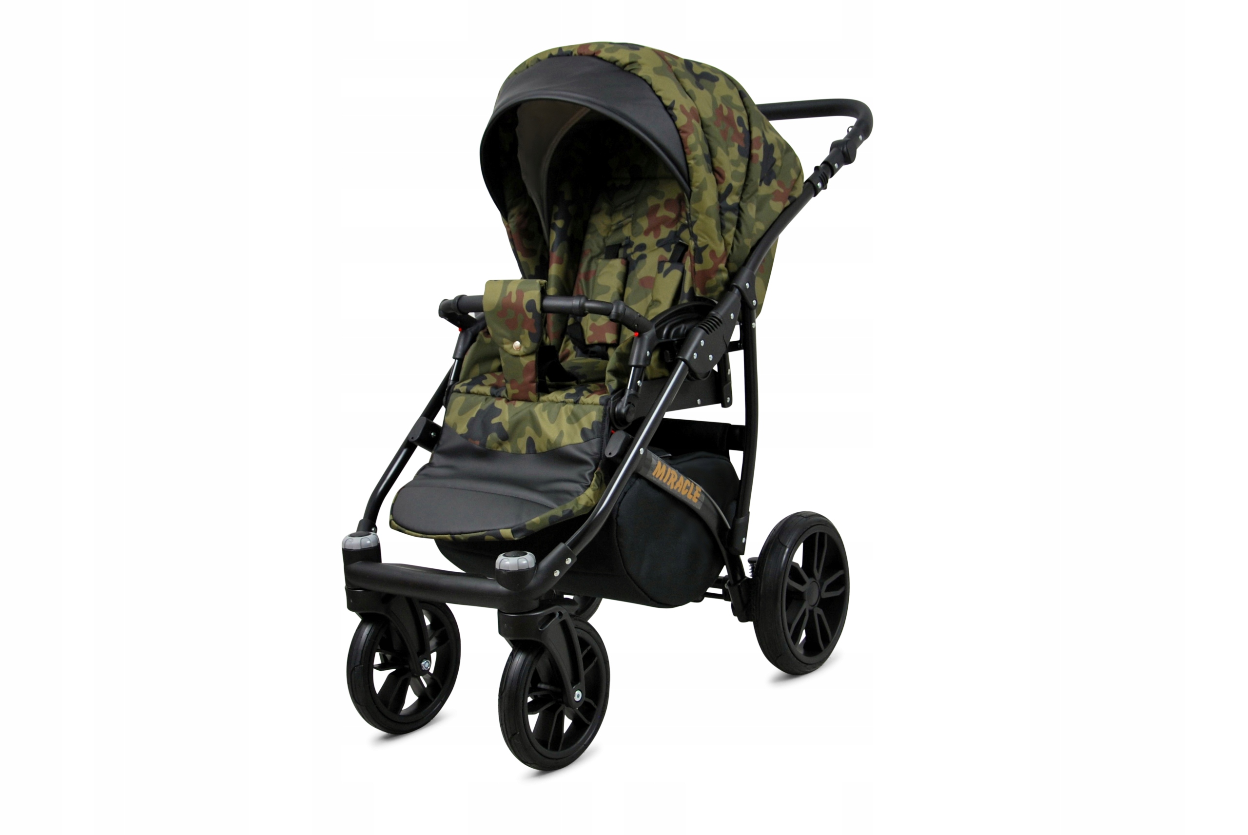 Miracle 4in1 — многофункциональная коляска из последней коллекции известного европейского бренда BabyLux. Может использоваться как глубокая коляска, ходунки и автокресло с возможностью крепления на раму коляски, а также имеет автомобильную базу ISOFIX. б>. Выполнена из эксклюзивной ткани высочайшего качества с сертификатом OEKO-TEX STANDARD 100 в цвете Tactical Moro, которая не только выглядит чрезвычайно элегантно, но и очень устойчива к выцветанию и влаге. Эксклюзивные ткани также обеспечивают путешествующему ребенку идеальную температуру и влажность воздуха независимо от погодных условий. Для максимальной функциональности и комфорта использования многие элементы коляски, такие как направляющая, ручка для переноски гондолы, перила и подножка коляски изготовлены из прочная экокожа. Благодаря этому товар прослужит долгое время.