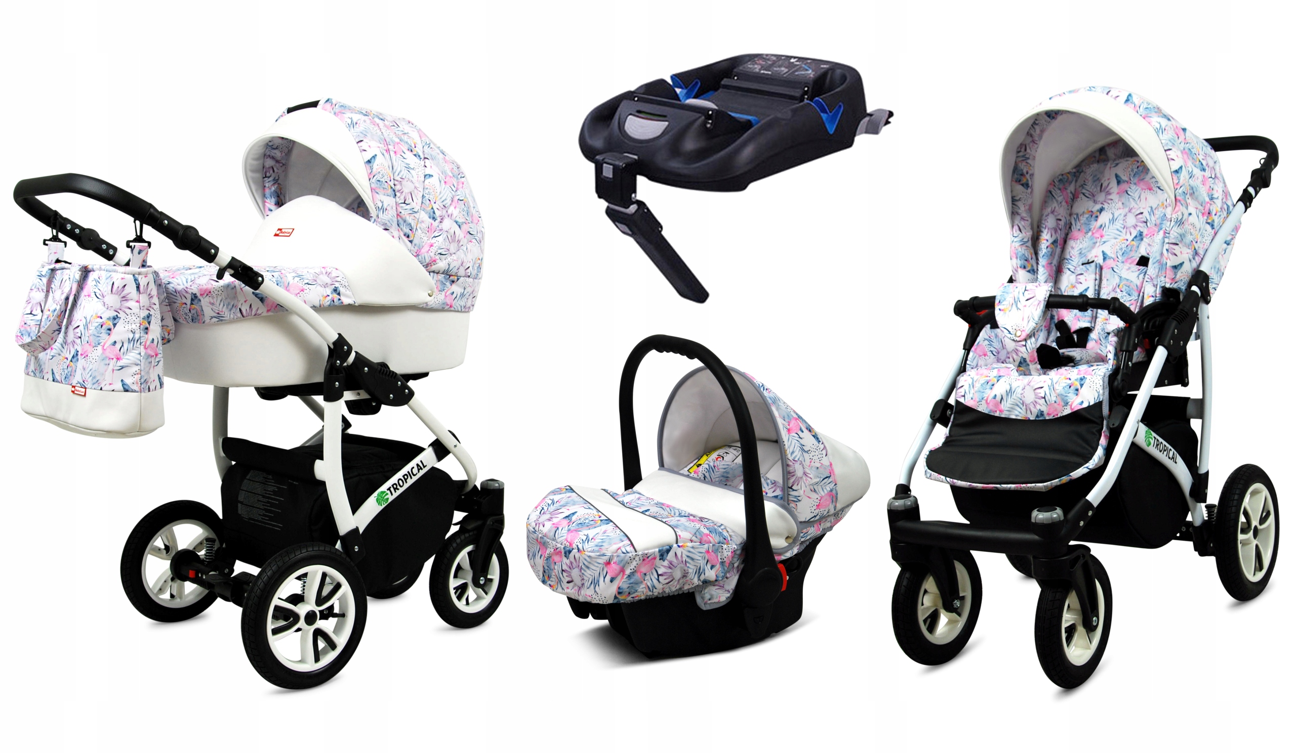 Коляска BabyLux Tropical ALU 4в1 - глубокая, прогулочная коляска, автокресло + база ISOFIX