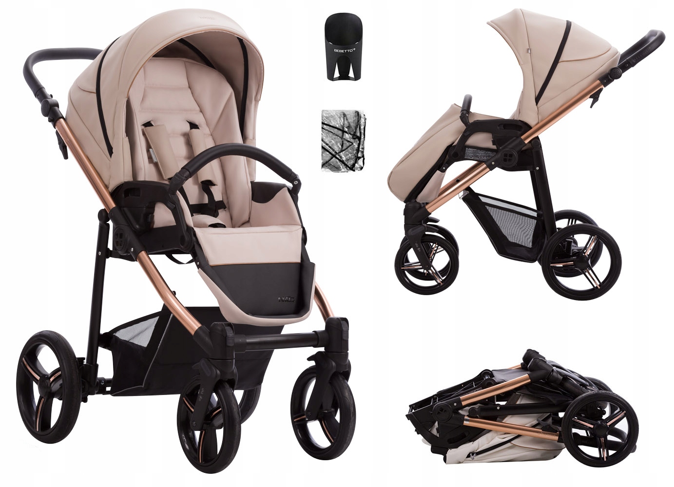 В колясках Bebetto используются инновационные решения, обеспечивающие максимальный комфорт во время езды. Система SAS отвечает за уменьшение толчков при движении по неровной поверхности, а DMS заставляет оторвавшееся от поверхности колесо запомнить свое предыдущее положение (что значительно облегчает управление).