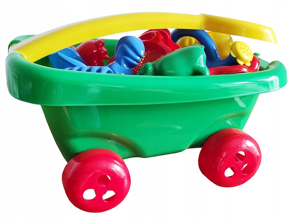 - КОЛЯСКА С РУЧКОЙ для МАЛЫША, которую можно использовать для игр в песочнице, на пляже, в саду и дома.