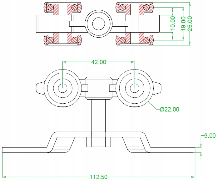 Тележка для подвесных дверей из плиты S100