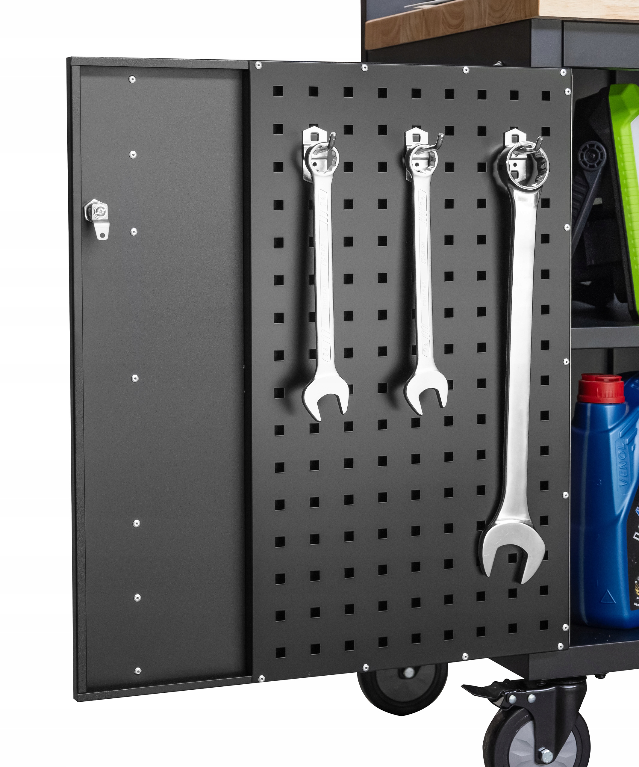 - Перфорированное расширение шкафа с возможностью подвешивания крючков