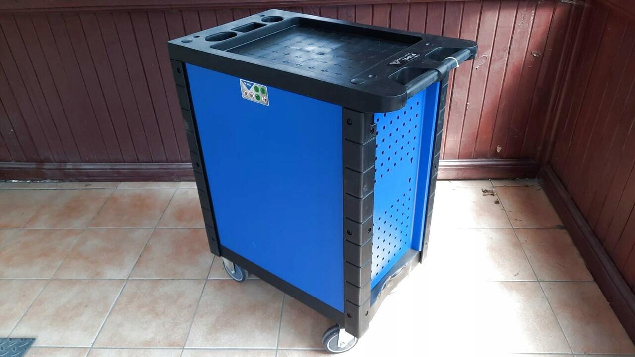 Благодаря двум стояночным тормозам на колесах он безопасно остается на месте назначения. Тележка для мастерской имеет семь выдвижных ящиков. Два ящика очень высокие, в них достаточно места для дрелей и других крупных инструментов. Дополнительное место для хранения можно создать с помощью соответствующих кронштейнов благодаря отверстиям по бокам. Все ящики оснащены шарикоподшипниками и могут выдвигаться максимум на 100% даже при полной нагрузке 35 кг.