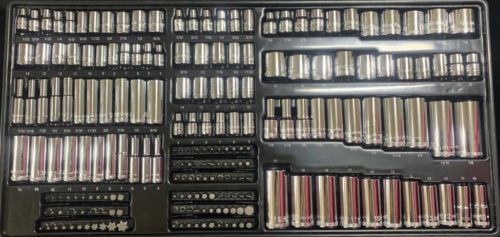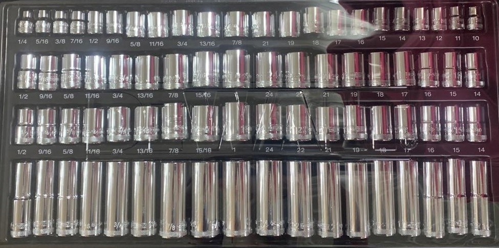 - 9 длинных шестигранных головок: 1/2", 9/16", 5/8", 11/16", 3/ 4", 13/16", 7/8", 15/16", 1"
