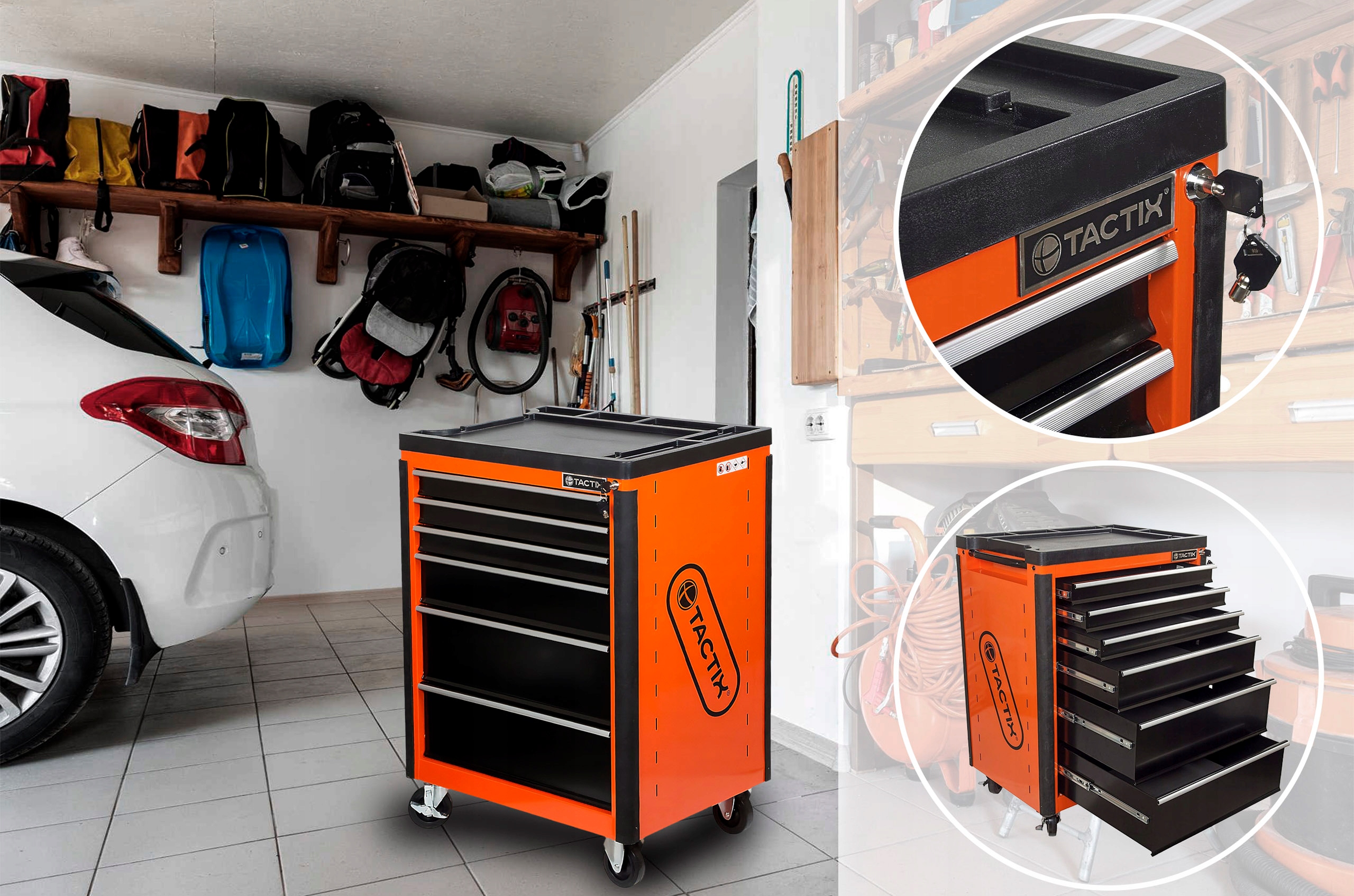 Шкаф для инструментов Tactix оснащен 6 шарикоподшипниками. ящики, позволяющие максимально эффективно хранить и организовывать инструменты.