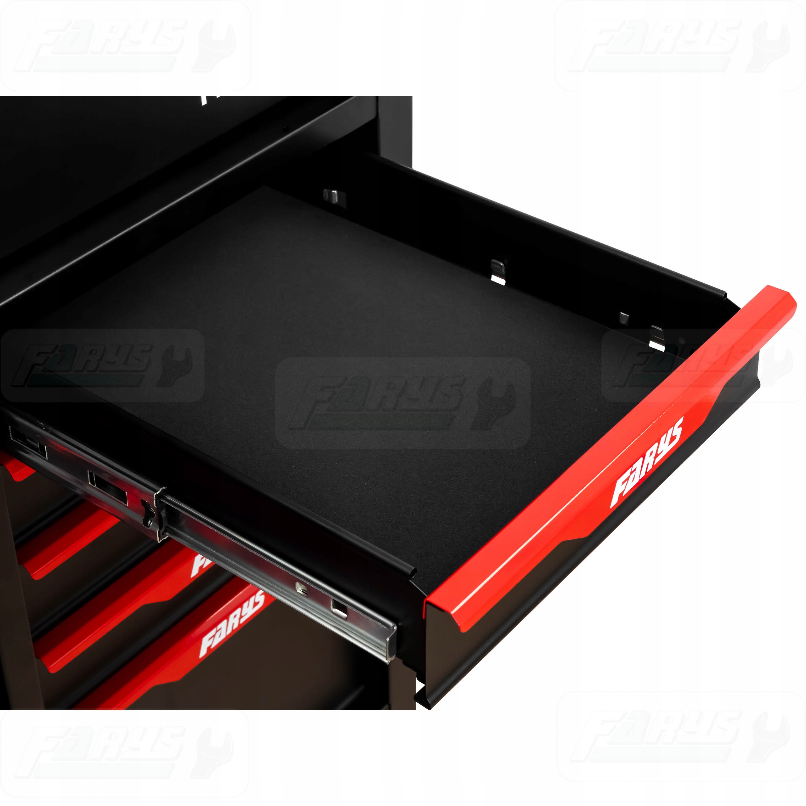 - Противоскользящий коврик толщиной 2,5 мм на дне ящиков – предотвращает скольжение инструментов, защищая их от повреждений.