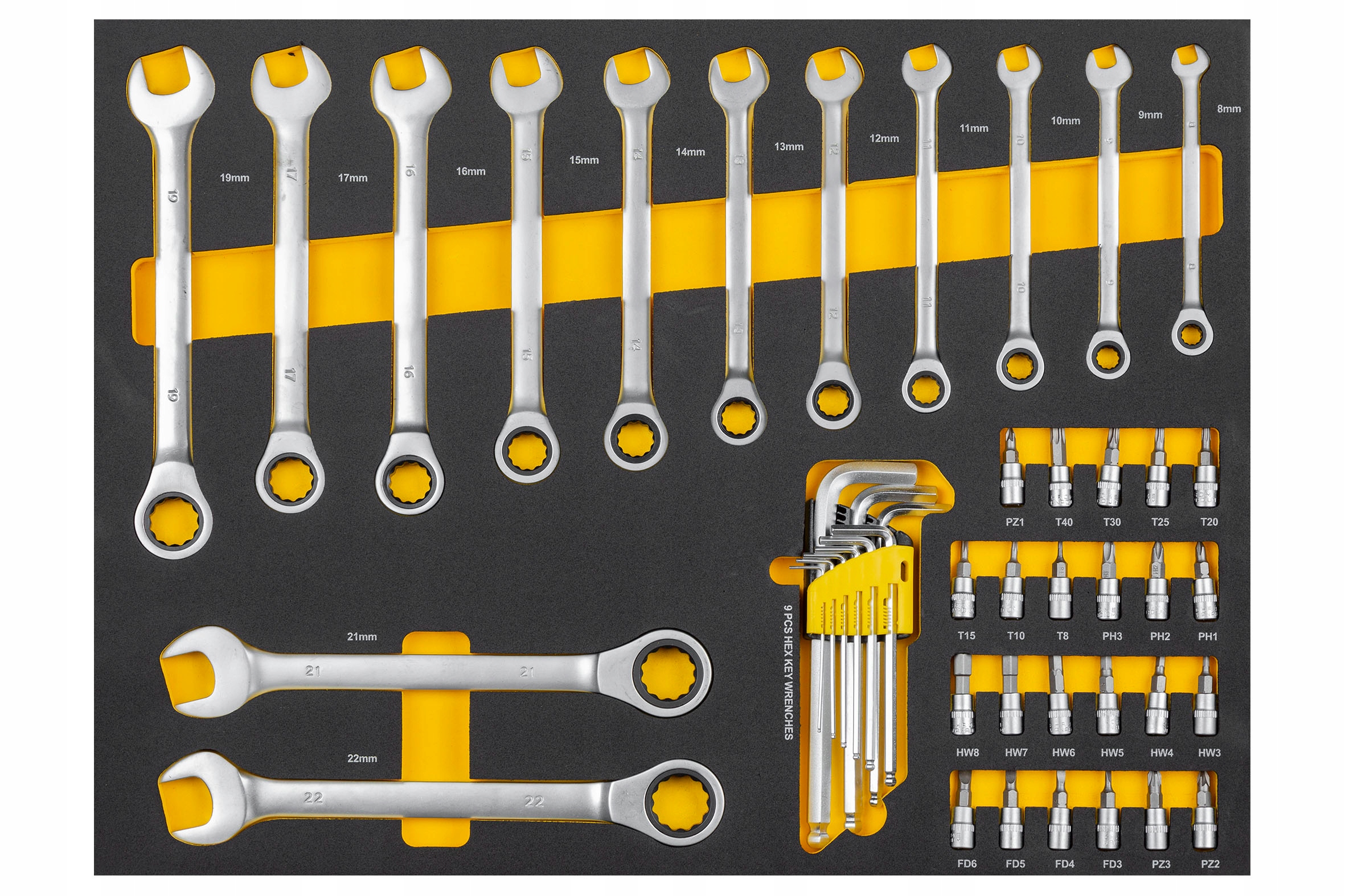 - Комбинированные ключи с храповым механизмом: 8/9/10/11/12/13/14/15/16/17/19/21/22