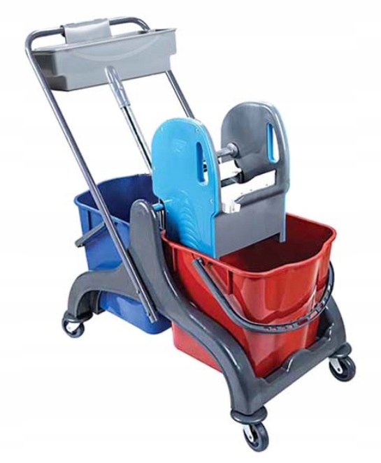 Тележка САТУРН имеет два ведра емкостью 20 литров, которые изготовлены из высококачественного материала ABS, отличающегося высокой устойчивостью к трещинам. В нем используется пресс с прижимными челюстями, что упрощает процесс отжима. Этот пресс работает с плоскими, веревочными швабрами и швабрами Kentucky. Управляется коляска комфортно и безопасно с помощью хромированной ручки. Он оснащен прочными и устойчивыми колесами, которые не царапают землю во время движения. Все это обеспечивает нам соответствующий комфорт работы. Корзина для чистящих средств, размещенная в практичном месте, облегчит работу и использование чистящих средств.