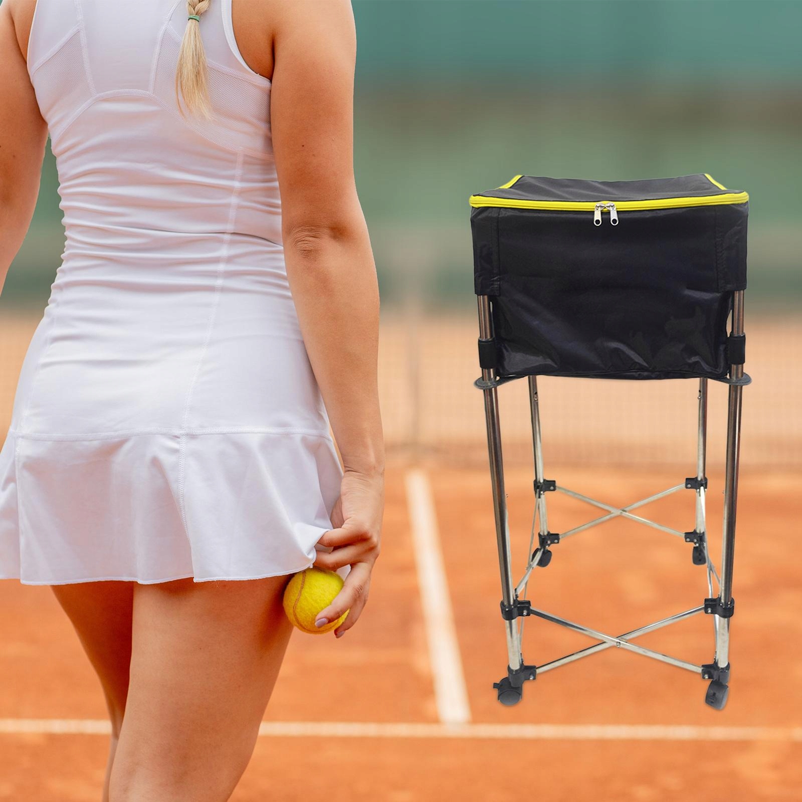 Тележка для теннисных мячей вмещает 150 теннисных мячей. Съемная теннисная тележка с черными колесами