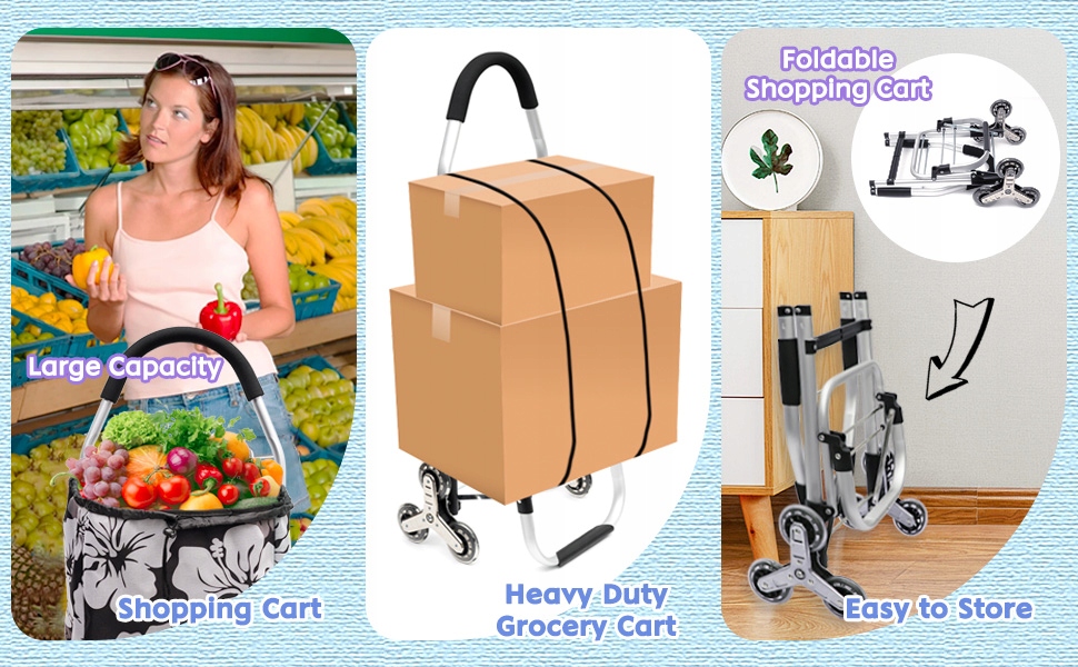 Благодаря интеллектуальной планировке 6 колес, этот Homcent позволяет легко подниматься на лестницу, бордюры или неровные тротуары. Идеально подходит для пожилых людей, людей с ограниченной подвижностью и всех, кто хочет не носить тяжелые сумки - покупки, пакеты или другие грузы принесут себе!
