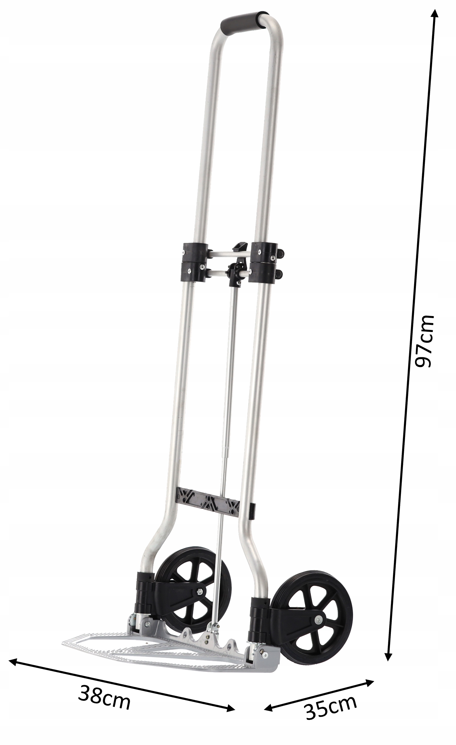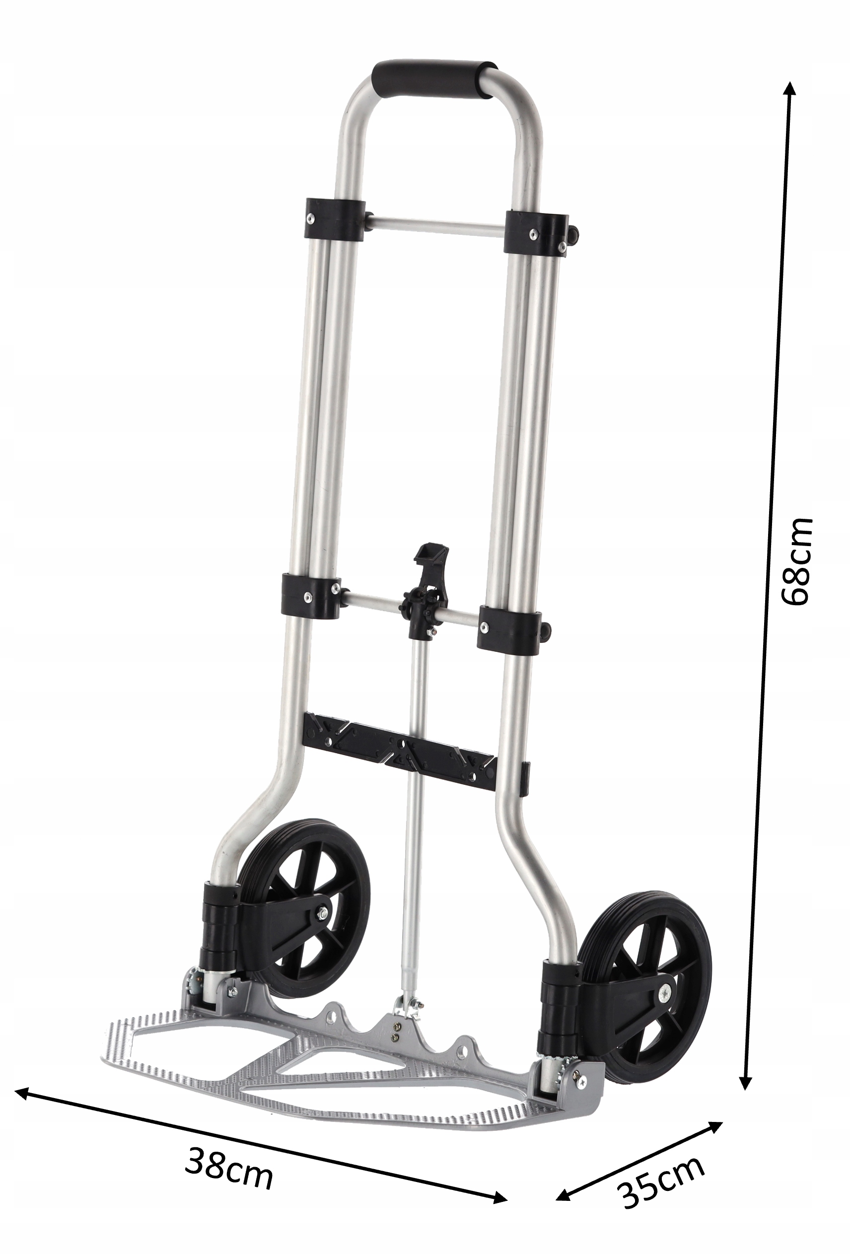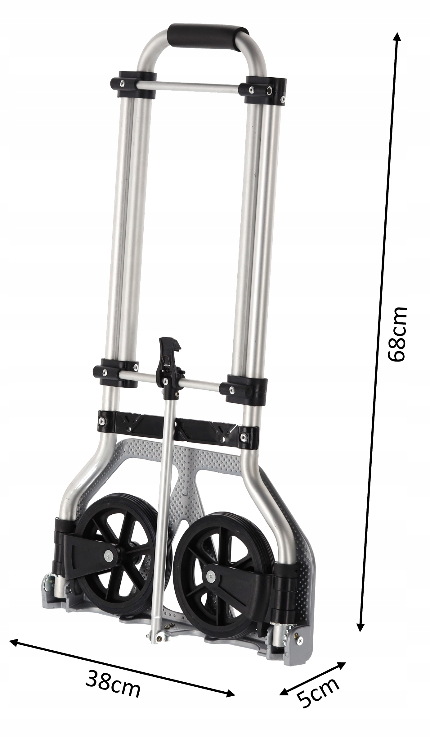Имеет нескользящую платформу, обеспечивающую безопасное и стабильное перемещение предметов. В тележке можно разместить как мелкие, так и крупные предметы, что дает вам универсальность при перемещении товаров.
