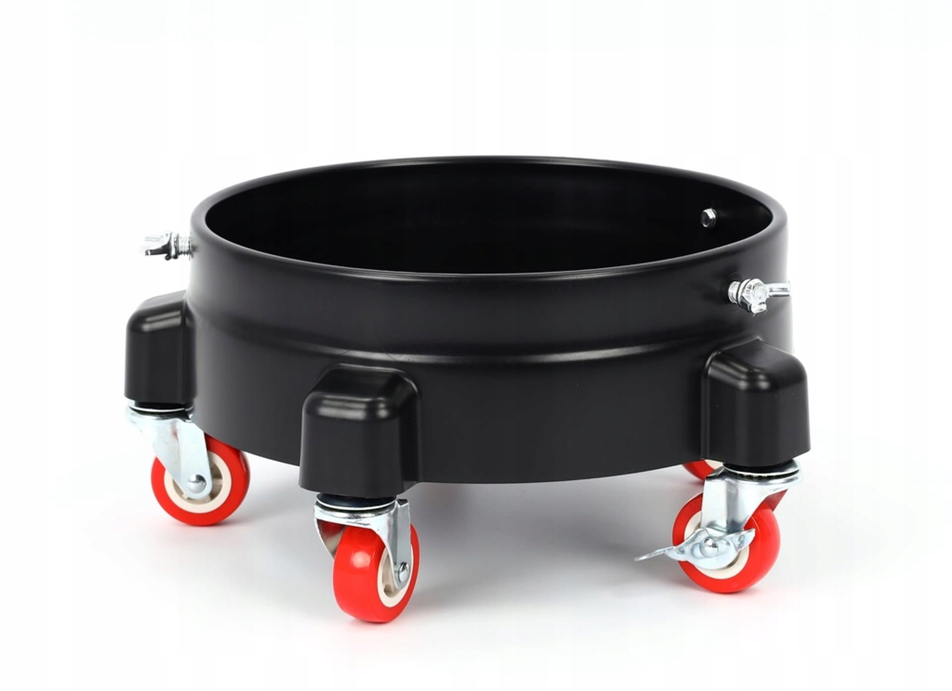 Тележка с ковшом оснащена четырьмя прочными колесами, которые обеспечивают ее устойчивость даже при полном заполнении ведра. Тележка дополнительно оснащена тремя навинчивающимися зажимами, которые гарантируют, что прикрепленное ведро не сдвинется с места и останется в том положении, в котором оно было изначально установлено. Тележка изготовлена из прочного пластика, легко выдерживает вес ведра с водой. Все это дополнено черным и красным цветами, выделяющимися на фоне серых будней.