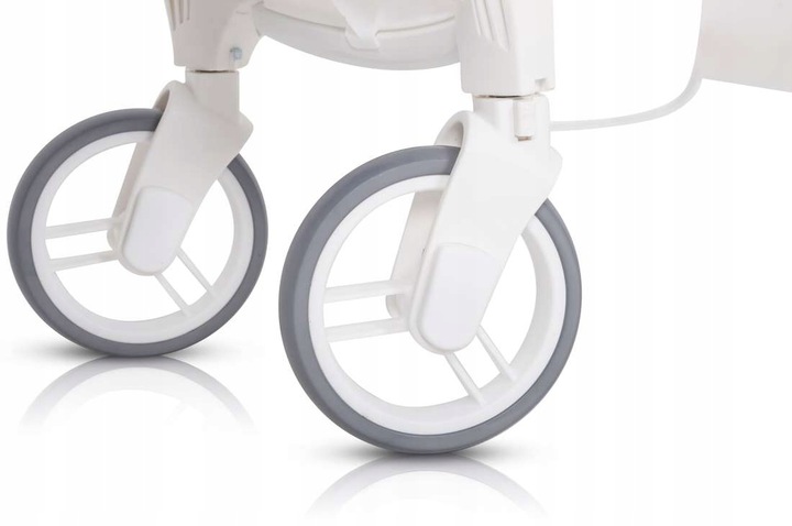 Благодаря использованию всех амортизированных колес большого диаметра (передние 17 см и задние 15 см) коляска отлично работает не только на асфальтированных покрытиях, но и на тротуарах из булыжника или в мягкой местности. Кроме того, использование функции блокировки передних колес упрощает вождение даже во время отпускных поездок. Коляска также оснащена комбинированным тормозом на оси заднего колеса.