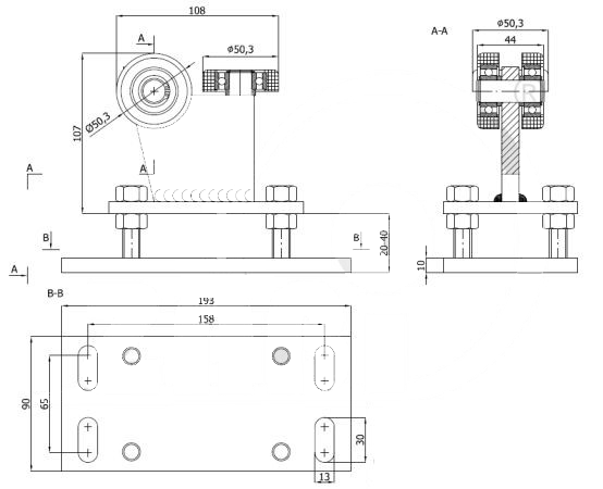 Точность отдельных деталей и их сборки влияет на работу тележки в опорной направляющей ворот, обеспечивая отсутствие прогиба ворот от своей оси.