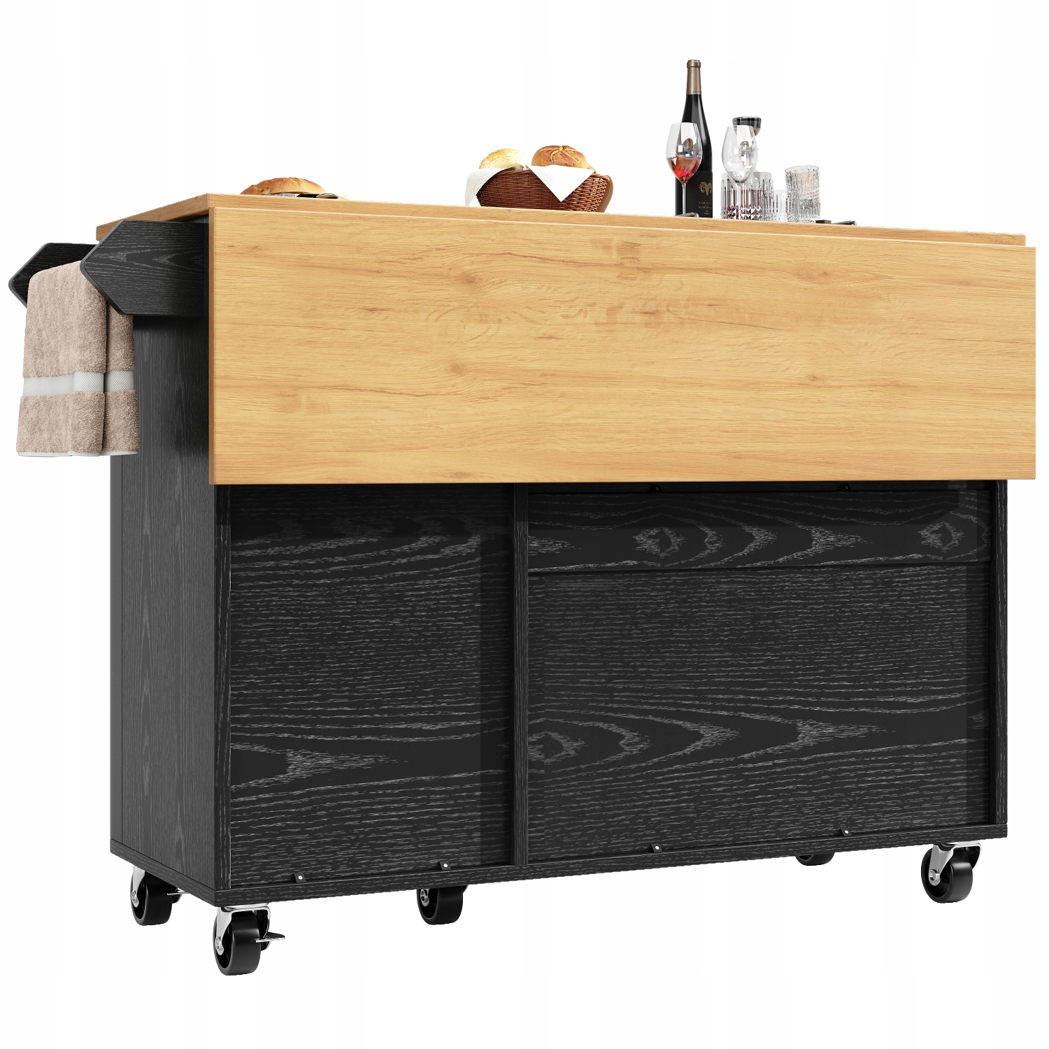 Передвижной кухонный остров: оснащен пятью поворотными на 360 градусов роликами, два из которых можно заблокировать, чтобы адаптироваться к меняющимся условиям, например, на кухне, в столовой или гостиной.