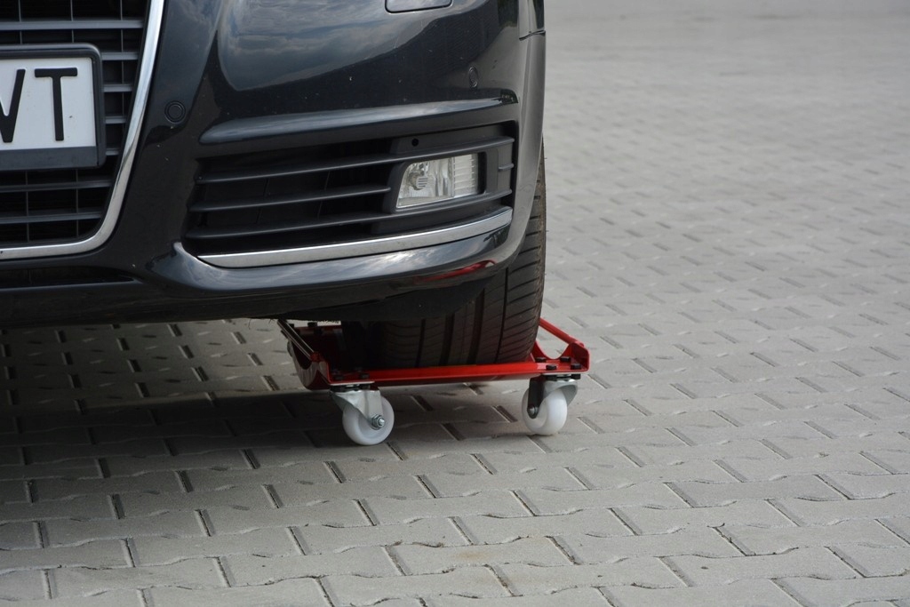 Функциональный и практичный ролик для перекатывания автомобиля. Оснащен четырьмя поворотными колесами на 360°, которые позволяют легко маневрировать во всех направлениях.
