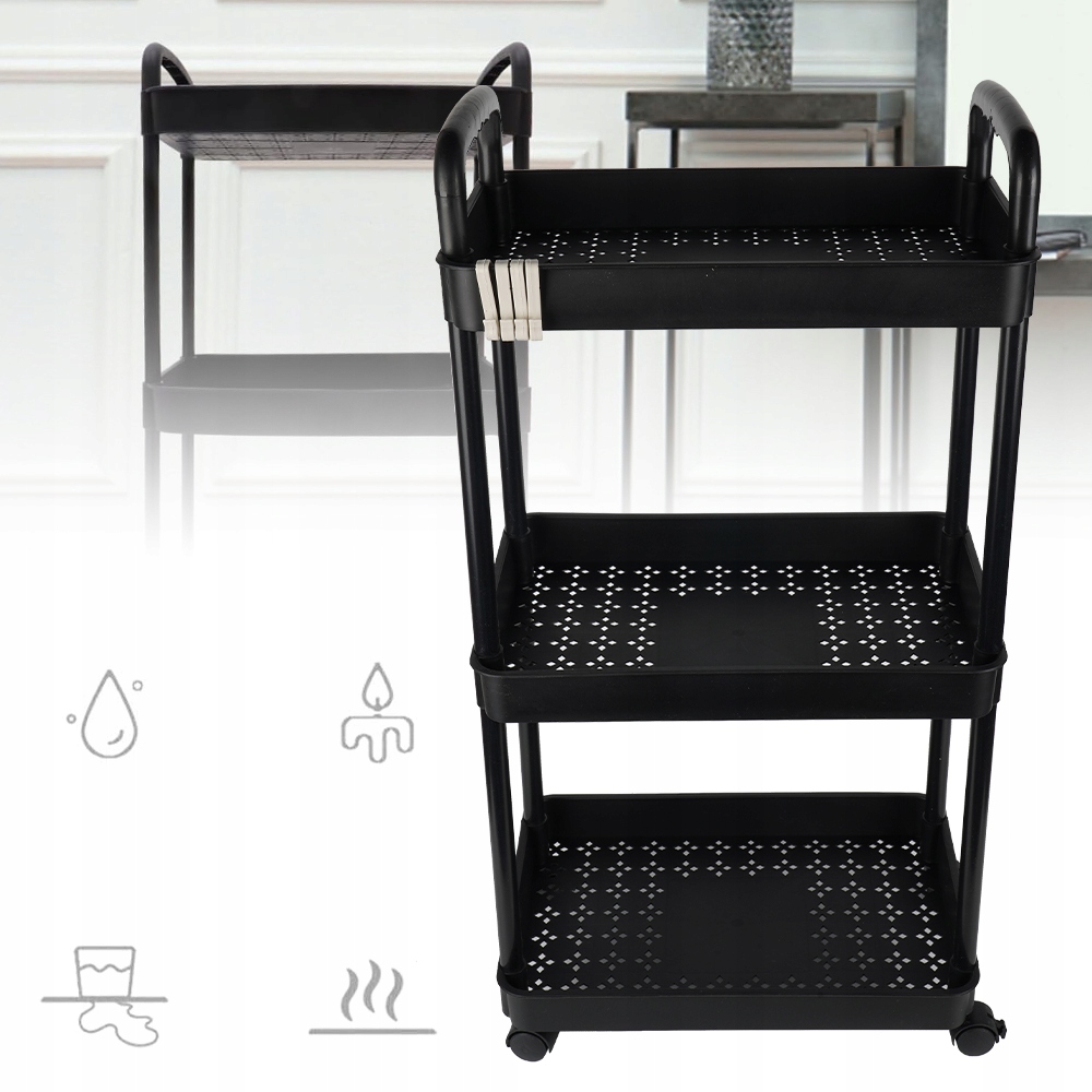 МЕТАЛЛИЧЕСКАЯ ТЕЛЕЖКА НА КОЛЕСАХ 360°, 3 УРОВНЯ, ЧЕРНАЯ ДЛЯ ДОМАШНЕГО ХРАНЕНИЯ