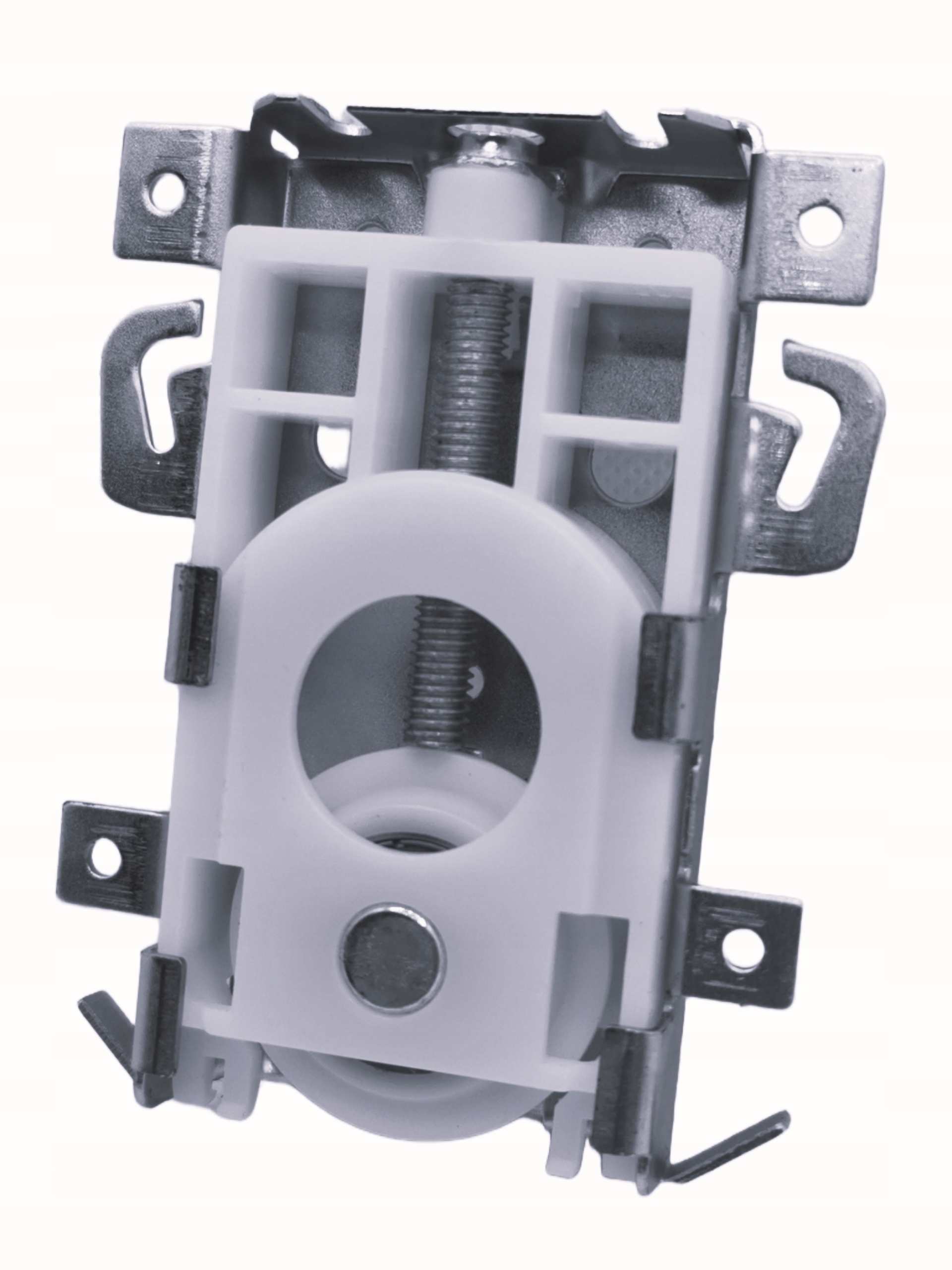 Корпус выполнен из конструкционной стали, оцинкованной, с элементами для крепления защелками и шурупами. Подвижная часть допускает регулировку в диапазоне 0-32 мм благодаря регулировочному винту и имеет элементы, предотвращающие падение тележки с рельсов. Тележка имеет колесо из прочного пластика, окружающее герметичный шарикоподшипник.