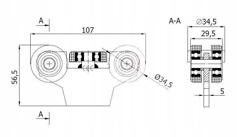 Тележка идеально подходит для использования при изготовлении подвесных элементов, ворот и подвесных дверей с использованием рельса. Горизонтальный пластиковый ролик тележки служит направляющим роликом, а вертикальные ролики являются несущими.