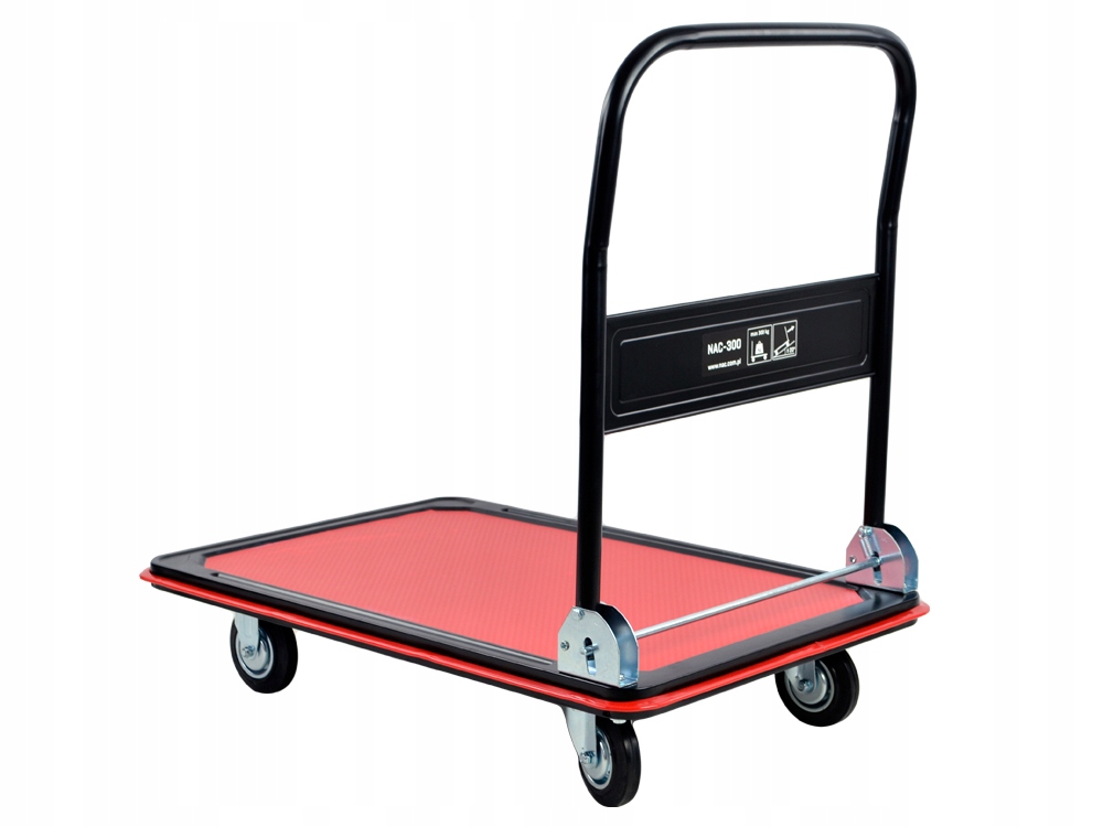 Тележка складская платформа от известной компании NAC, 4 колеса, грузоподъемностью до 300 кг – складной вариант с двумя поворотными колесами.