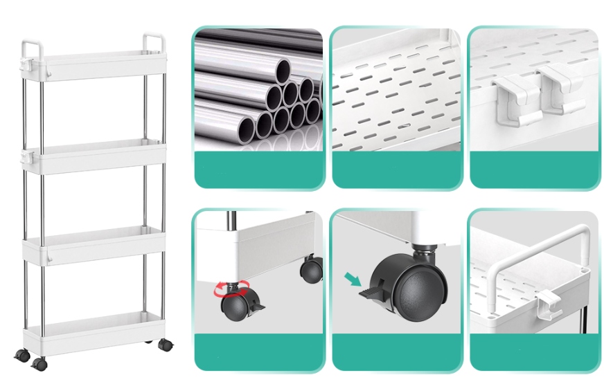- ✅Многофункциональность: Тележка на колесиках удовлетворит все ваши домашние потребности. Вы можете использовать его как тележку для ванной, кухонную тележку, обеденную тележку, сервисную тележку, стеллаж для хранения, тележку для инструментов и многое другое. Вы можете положить в него все, что захотите: туалетные принадлежности, полотенца, поделки, растения, моющие средства, инструменты, продукты, продукты питания, документы и т. д. Сделайте свой дом чище и опрятнее.