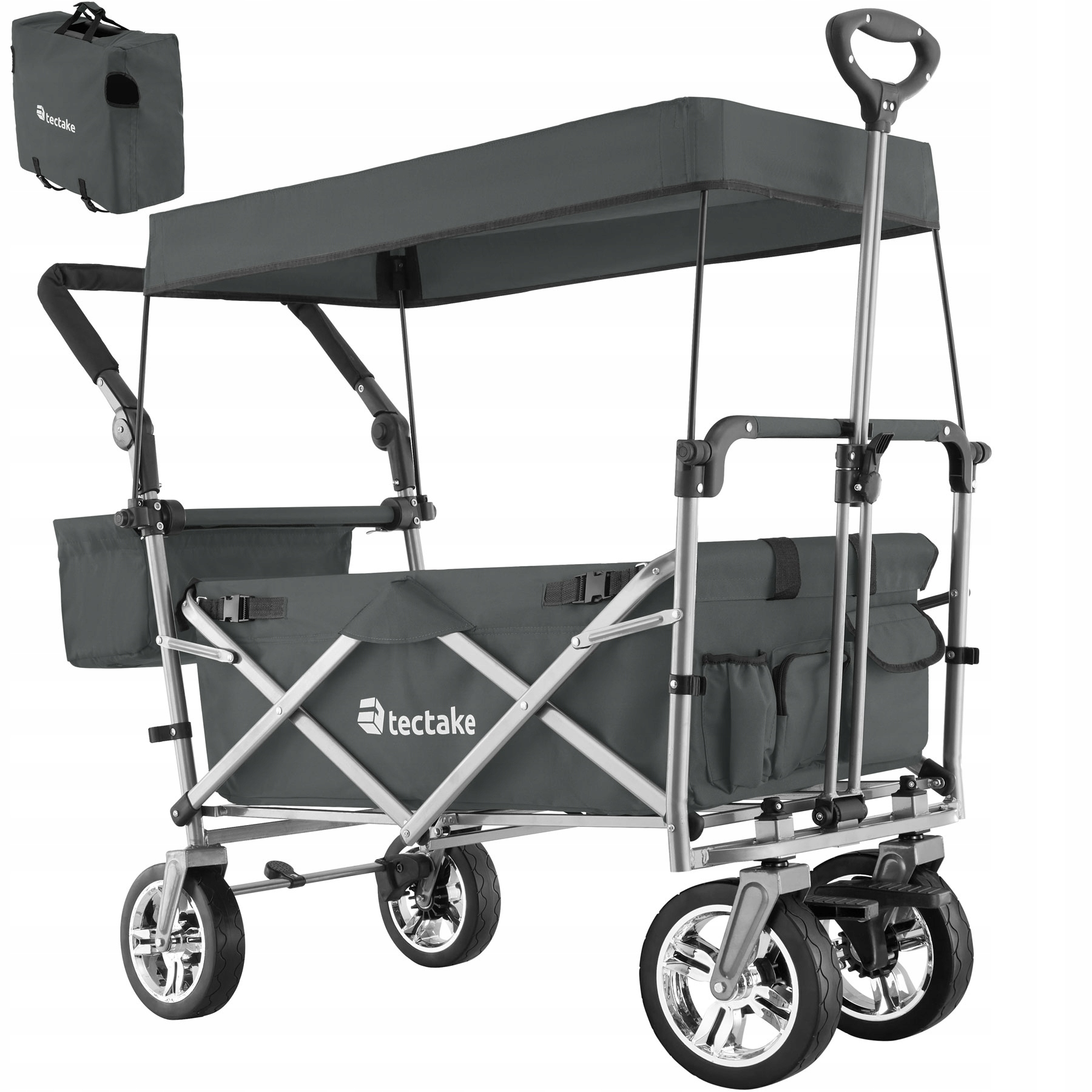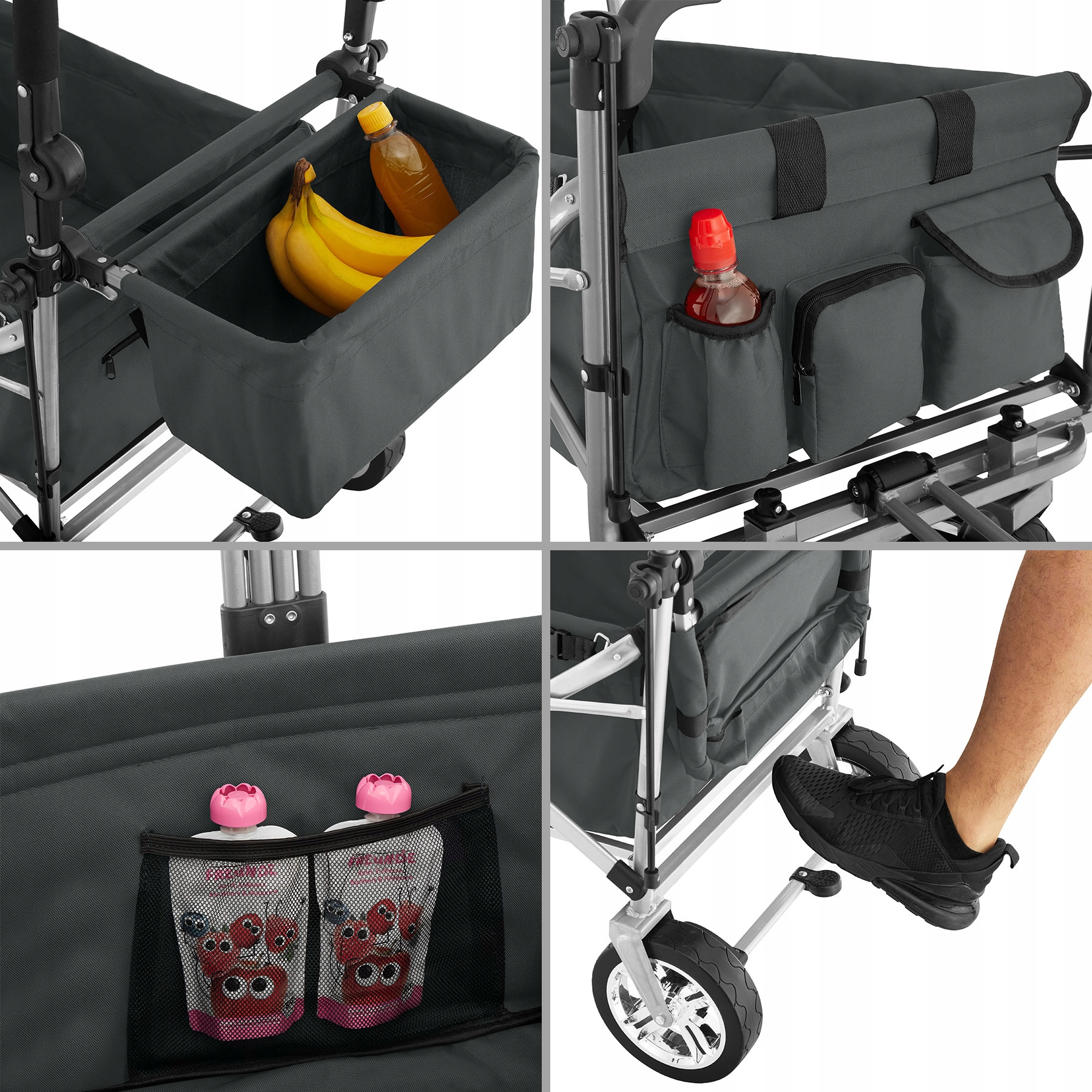 Количество карманов и съемная крыша — это лишь некоторые из многих преимуществ этой функциональной ручной тележки от tectake. Благодаря продуманному механизму складывания коляска готова к отправке в мгновение ока. Выдвижное дышло, регулируемая ручка и плавно вращающиеся пластиковые колеса с профильным профилем делают вождение и рулевое управление комфортными и энергосберегающими. Прочная стальная рама и прочная полиэфирная ткань гарантируют высокую устойчивость, устойчивость к воде и грязи, а также длительный срок службы - для множества применений во время веселых семейных поездок или захватывающих фестивалей.