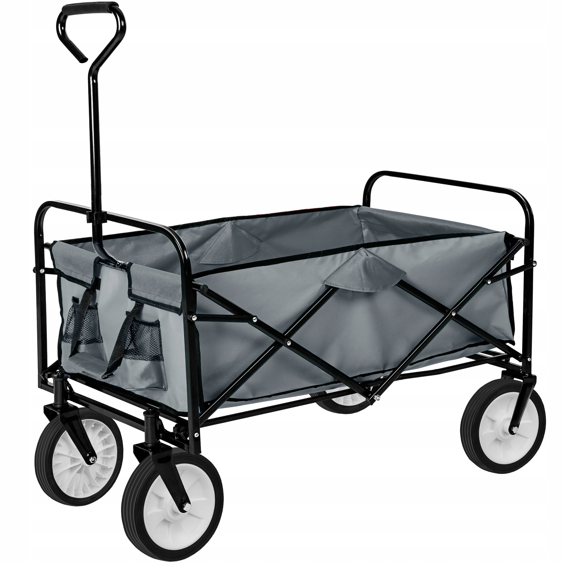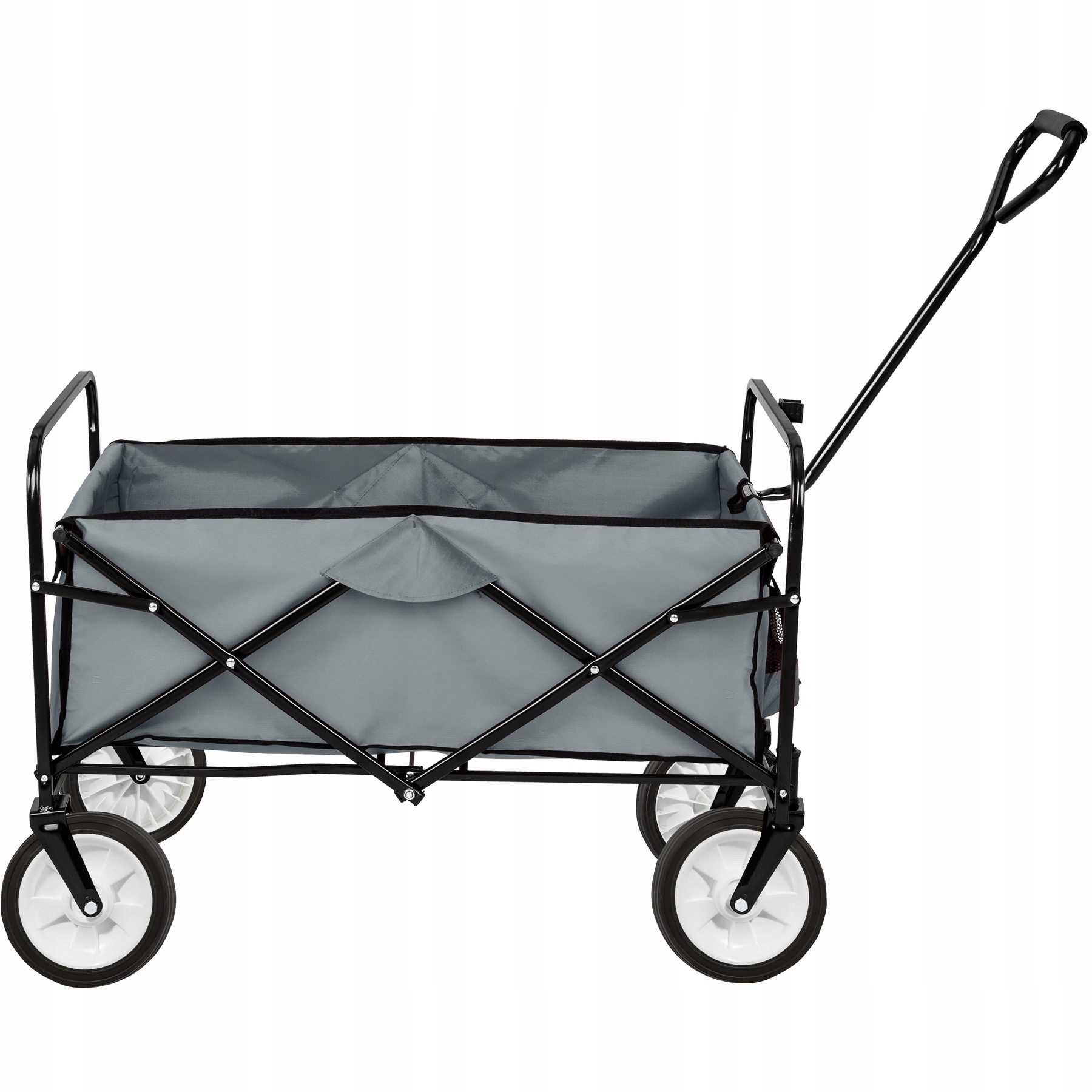 Эта универсальная складная транспортная тележка идеально подходит для перевозки покупок, семейных поездок и т. д. Тележка легко складывается, поэтому ее можно хранить в любом подвале, гараже или ствол. Передние пластиковые колеса вращаются на 360°, что позволяет легко толкать и тянуть коляску. Благодаря устойчивой раме на него можно загрузить до 80 кг.