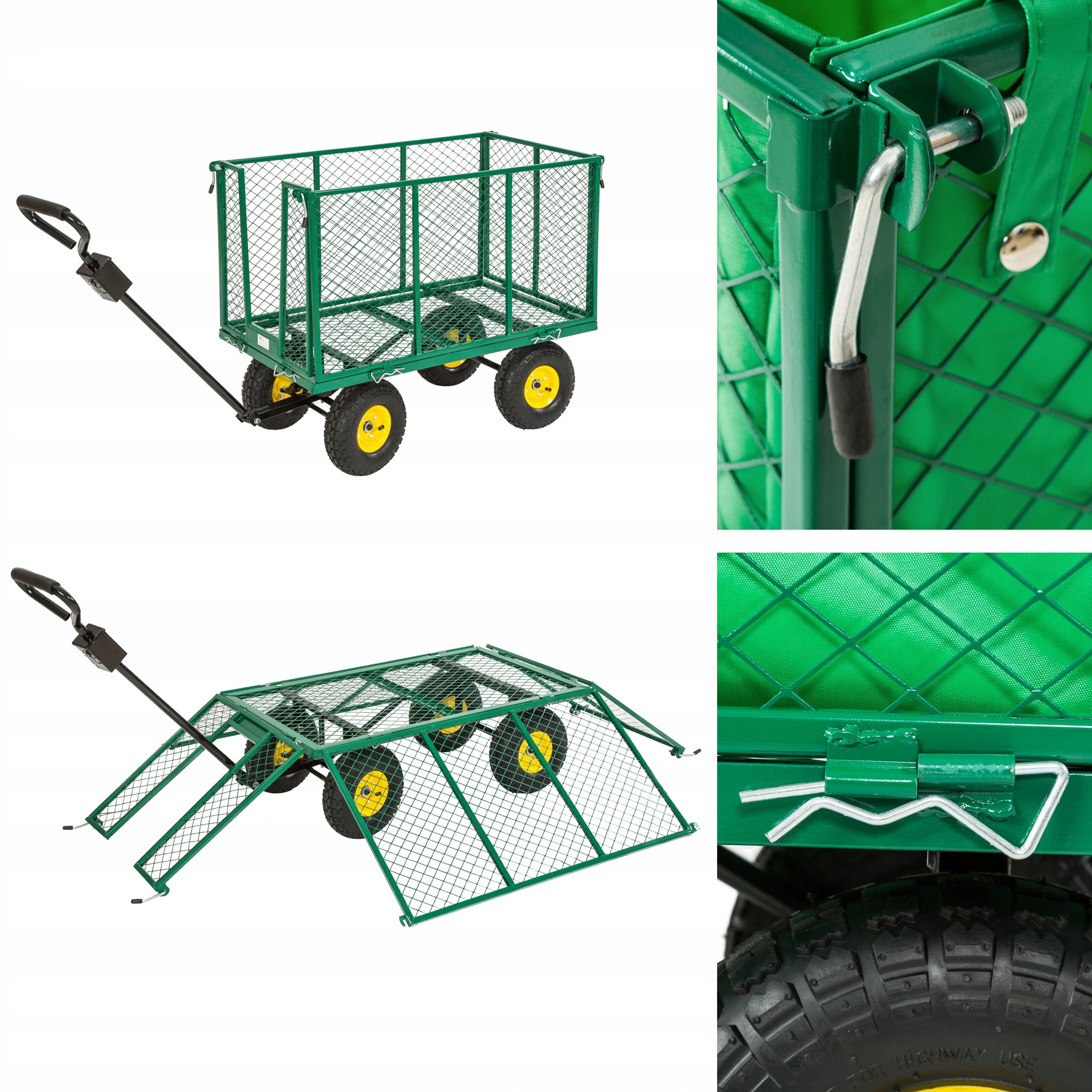 Удобная транспортная тележка большой вместимости. Прицеп изготовлен из высококачественных материалов (сталь с порошковым покрытием). Сетчатые стороны можно быстро сложить и поднять.