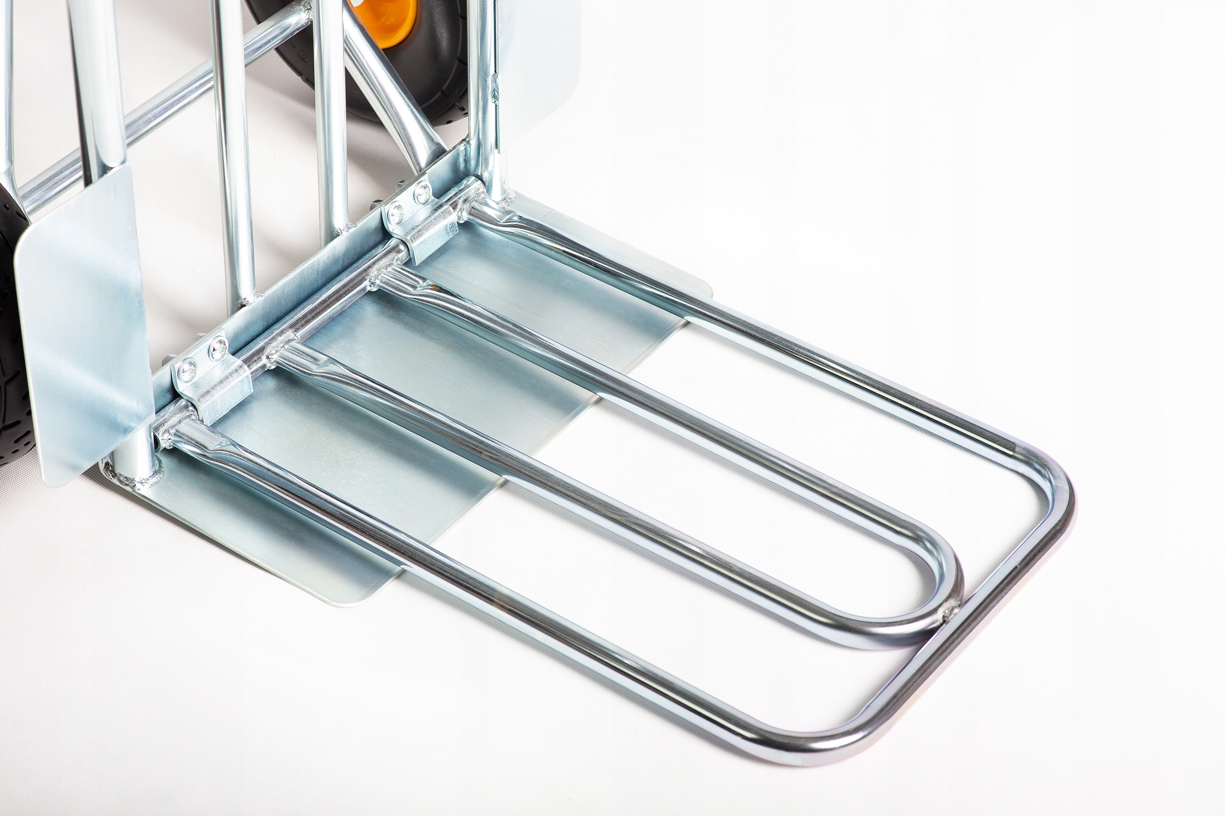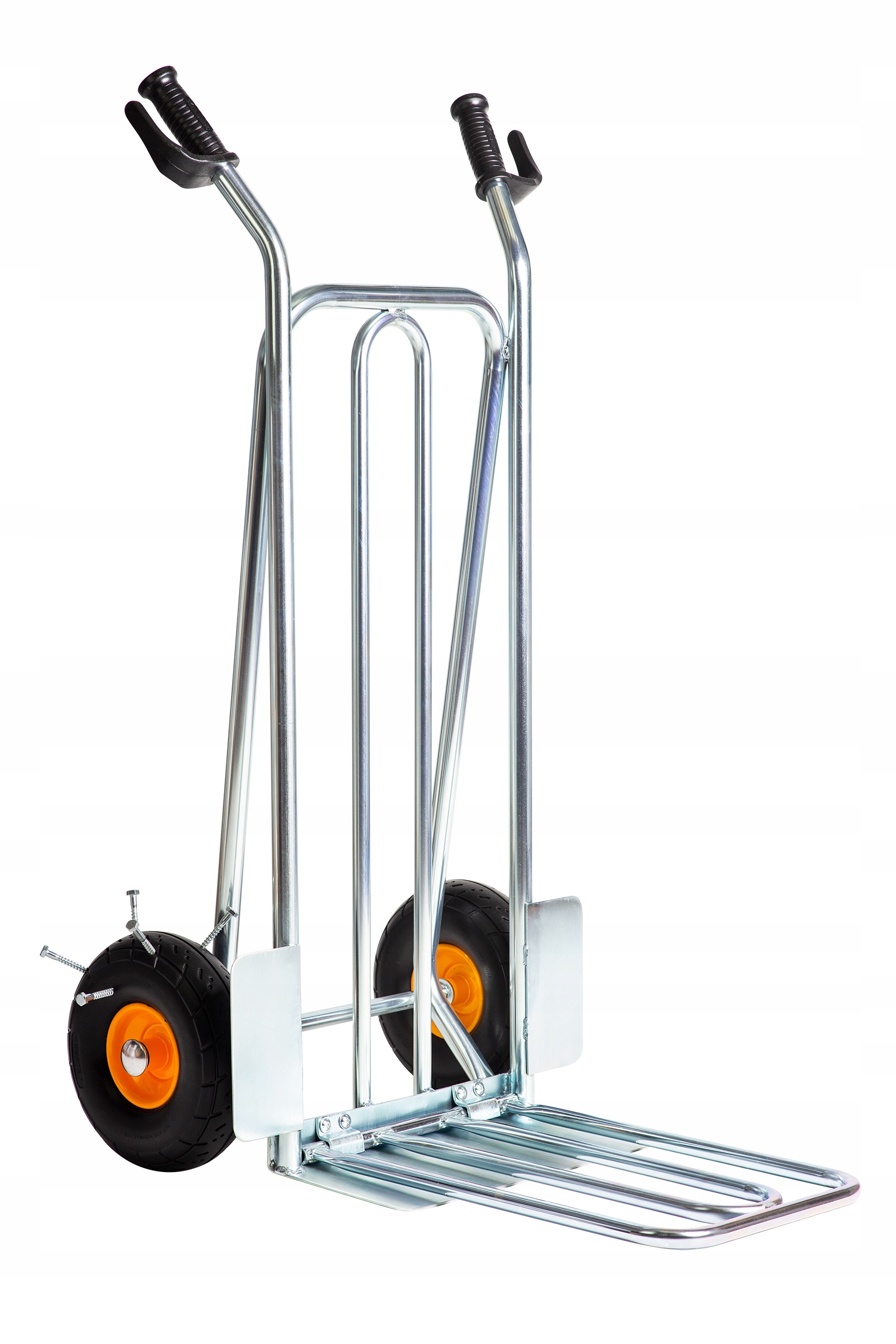 Удобная транспортная тележка для любого магазина или склада. Прочная конструкция и прочные колеса из пенопласта позволяют безопасно перевозить грузы. Благодаря дополнительной, большой, складной платформе можно перевозить очень большие грузы.