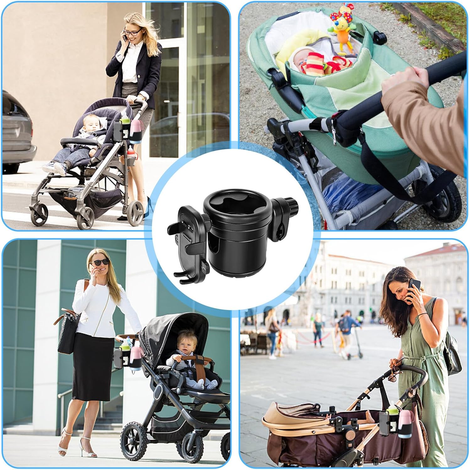 Поворотный на 360° держатель для напитков — вращающийся на 360° держатель для напитков в коляске с нескользящими резиновыми подушечками, позволяющими регулировать его под любым углом.