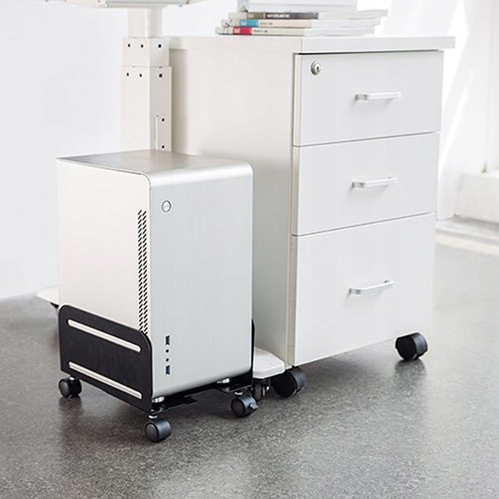 - Она позволяет легко перемещать компьютер, а также облегчает доступ к разъемам на задней панели компьютер. Идеальное решение для лучшей организации как на работе, так и дома.