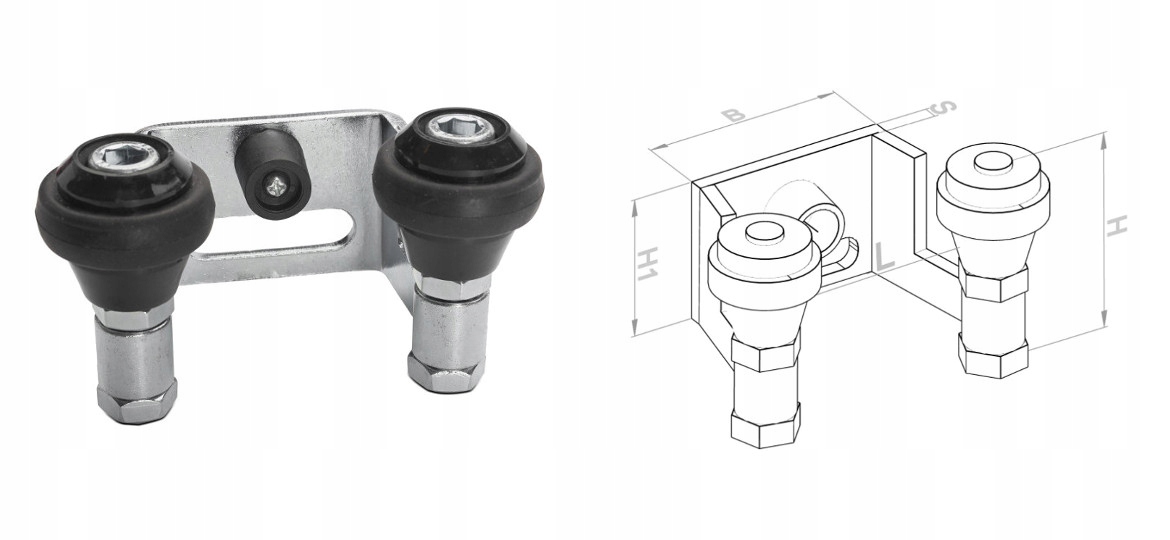Комплект тележек с фурнитурой для откатных ворот - рейка 80х80х5 мм. Тележки регулируются по вертикали и горизонтали, что обеспечивает плавность хода роликов на рельсе.