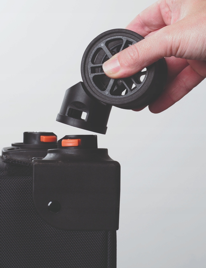- Колеса также имеют противоволновую систему; Они также съемные и могут вращаться на 360° в разные стороны, поэтому их легко перемещать благодаря удобной телескопической ручке.