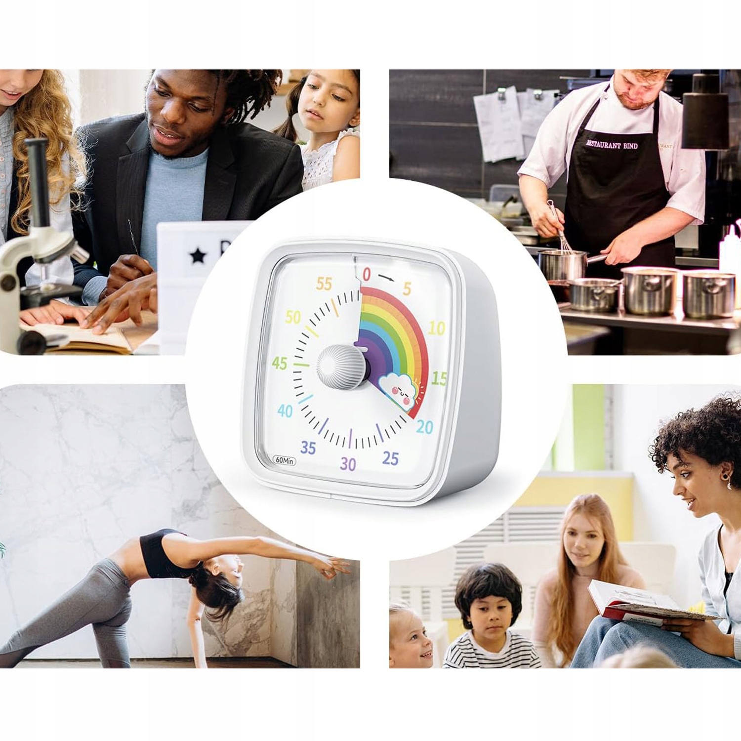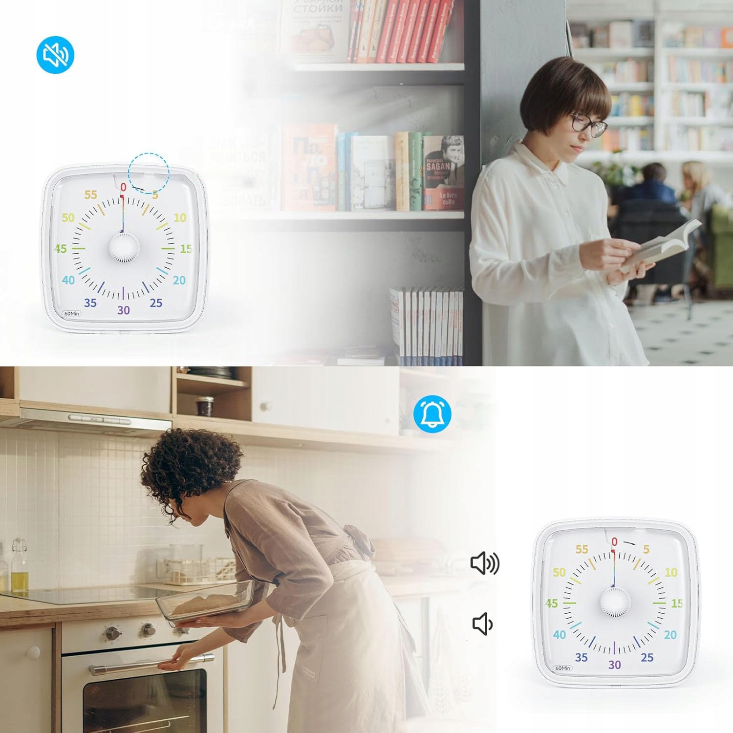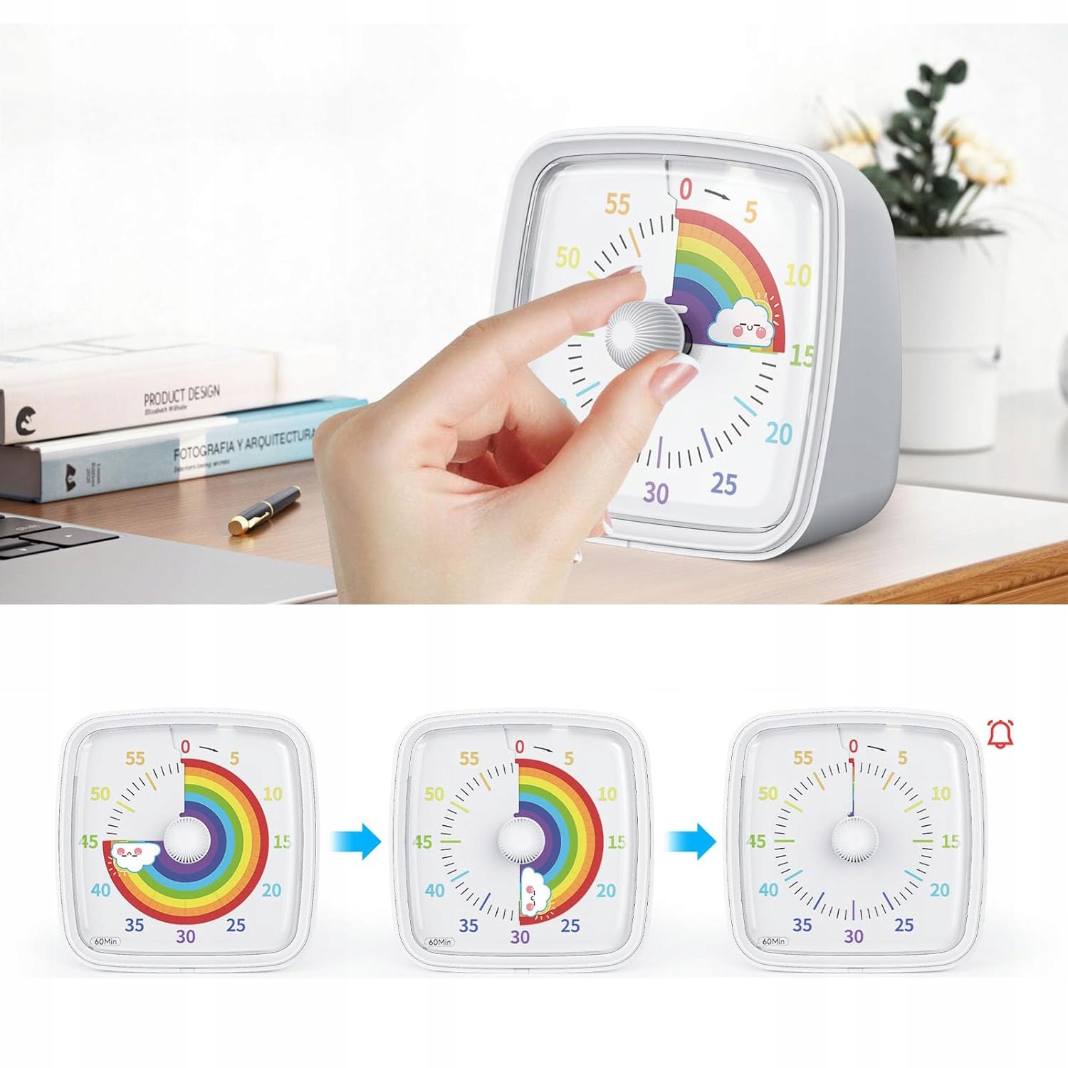 В визуальном таймере есть 3 режима колокола: тихий, тихий и громкий. Вы можете выбрать нужный режим. По сравнению с другими таймерами, этот таймер имеет функцию паузы с одним щелчком.