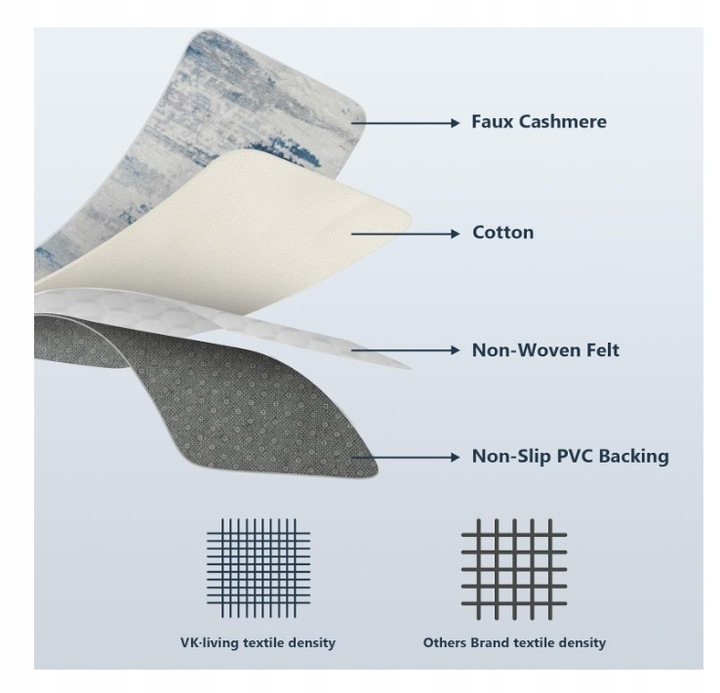 vk-living Care для салона Sparth 120 x 1170 см. Воздрчество Специальная пена с памятью формы высокой плотности добавляется между щетинками и задним слоем ковра, чтобы перенести мягкость и комфорт ковра на новый уровень, так что вы чувствуете себя в облаках на каждом шагу на ковре.
