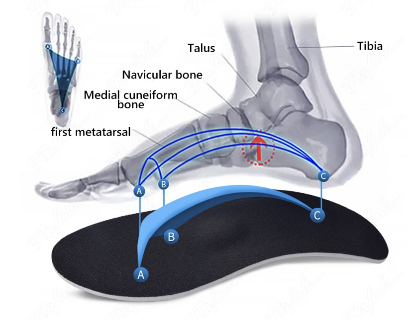 - Биомеханическая поддержка продольного и поперечного свода стопы.