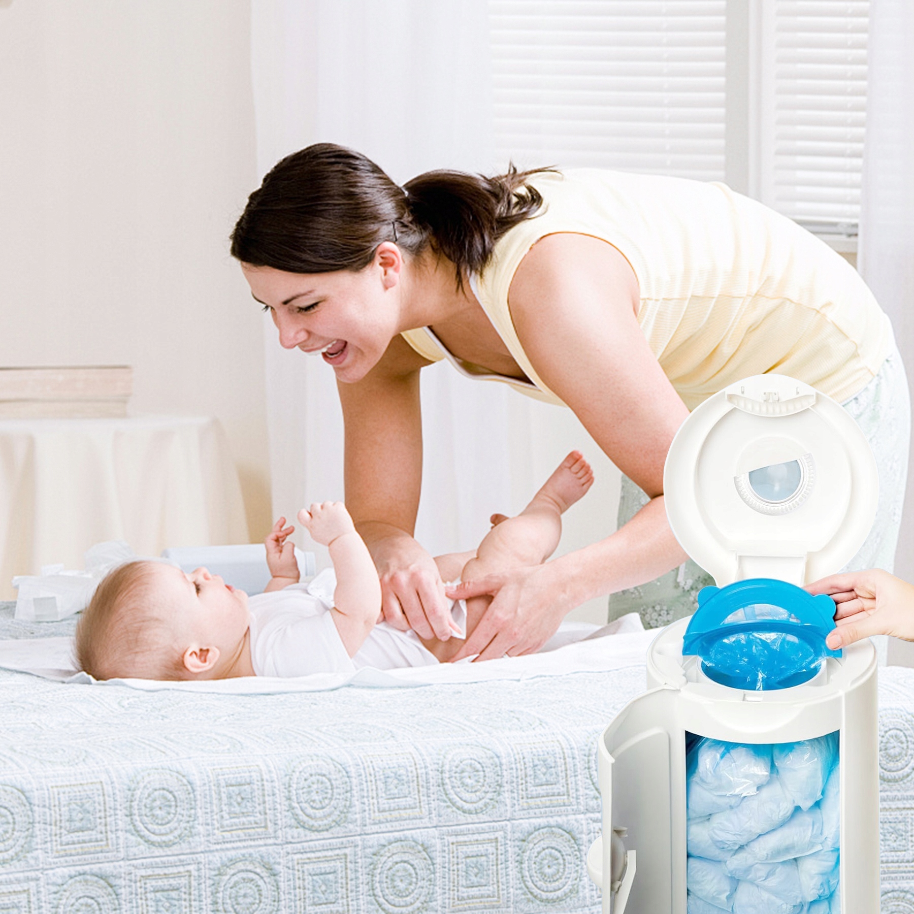 - Вмещает до 360 подгузников (в зависимости от размера подгузника)