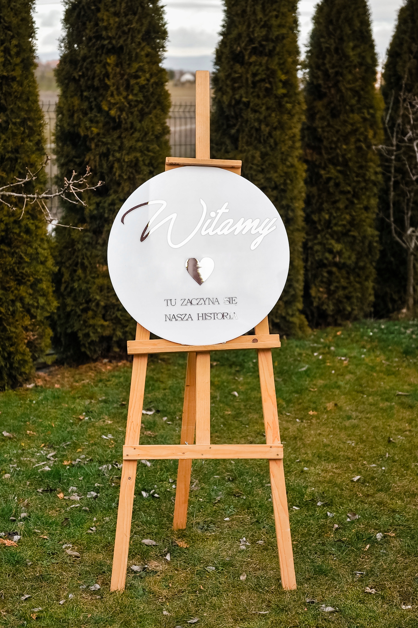 Красивое украшение, приветствуя гостей перед домом, а также перед свадебным залом. Субтитры, изготовленные методом лазерной резки из серебряного зеркала, приклеенного к белому MDF.