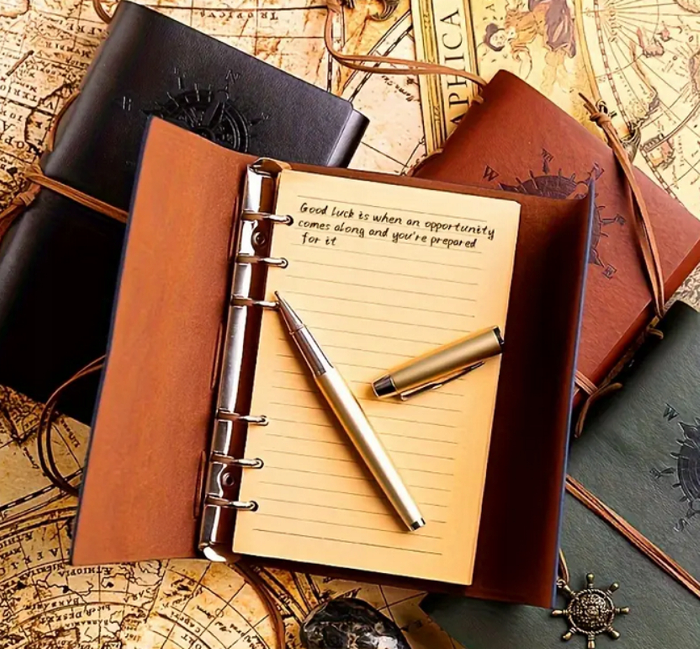 - Классический кожаный ноутбук с матовым покрытием, характеризуется твердым ответом и металлической пряжкой.