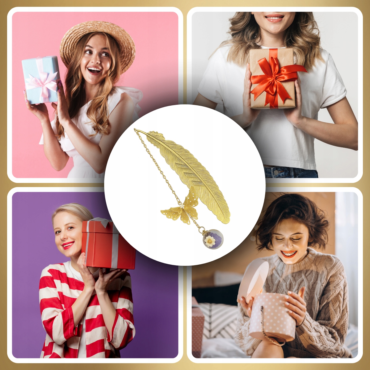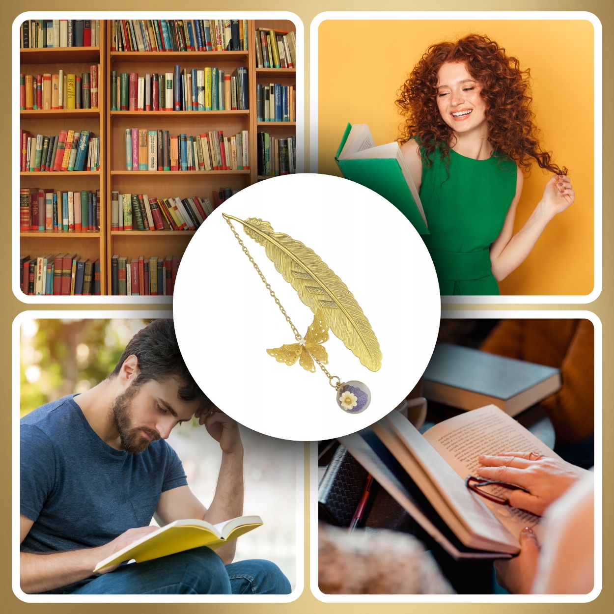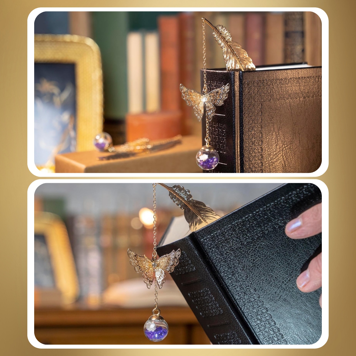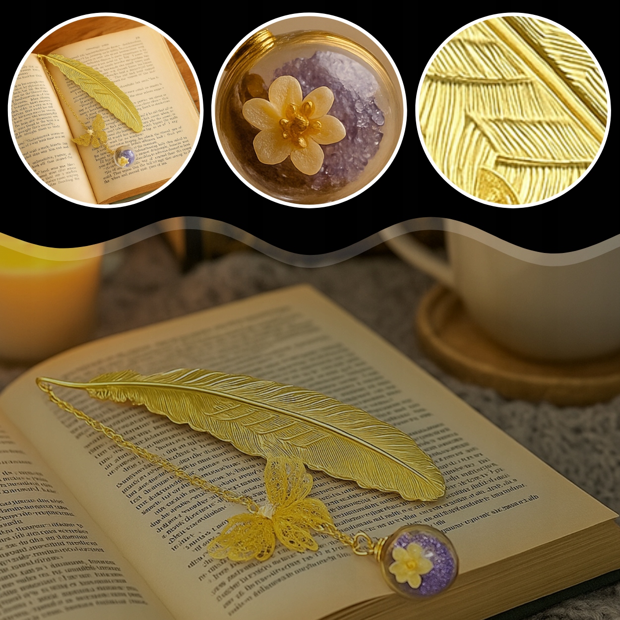 📖 Золотая закладка - перья с бабочкой и цветочным мячом h1>