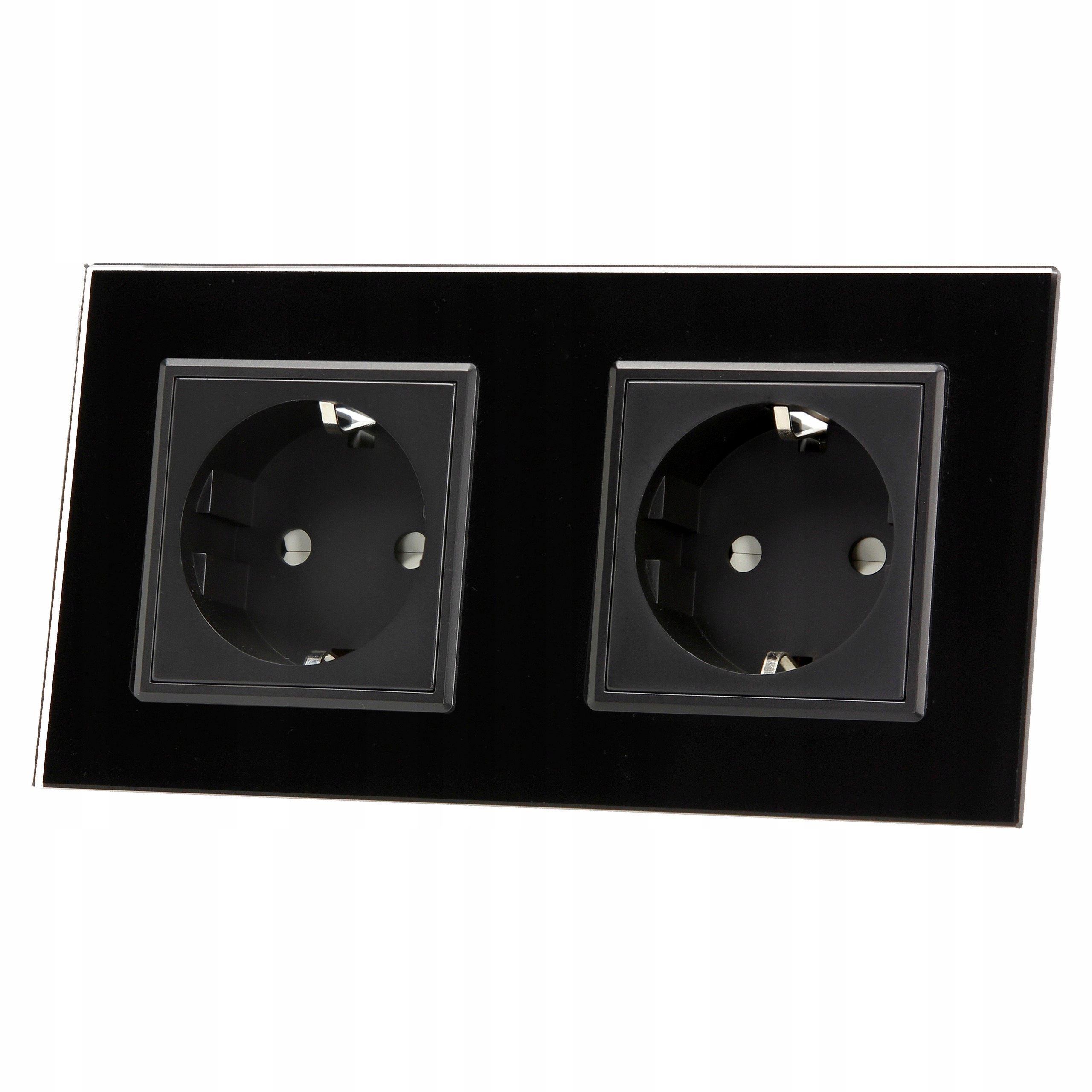 VL-W02EU-62 Двойная электрическая розетка 16А LIVOLO BLACK GLASS, европейская система для круглых банок