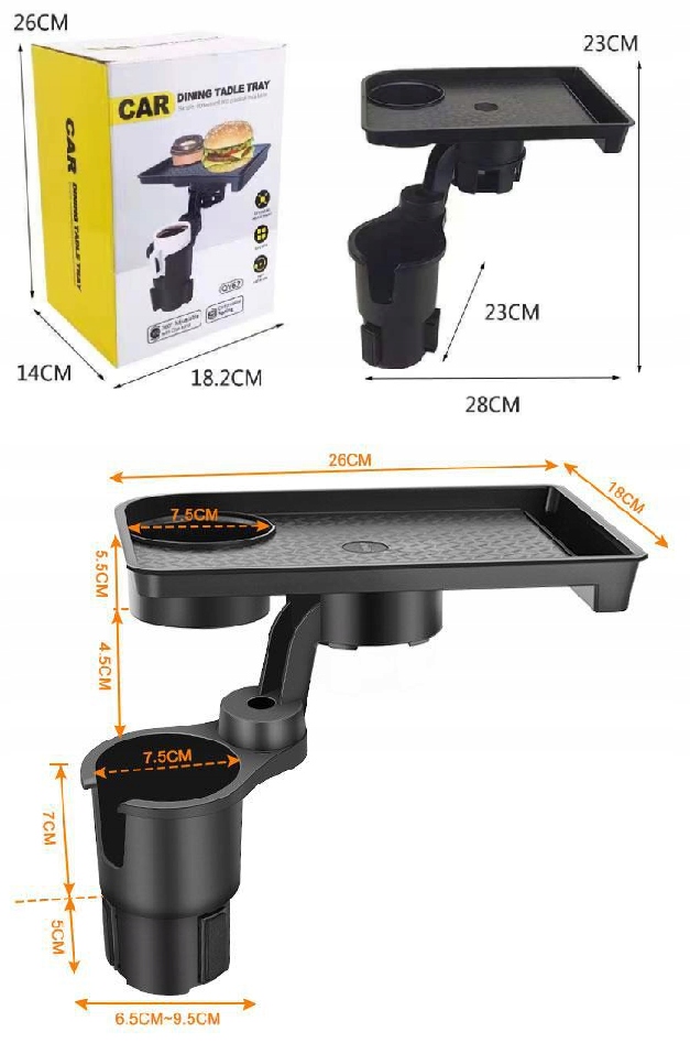 Практический и современный держатель автомобиля с мини -столом является идеальным решением для водителей, которые ценят комфорт и заказ в автомобиле. Он может легко разместить чашку с кофе, телефоном, очками или закусками, создавая мини -утилитную зону у вас под рукой.